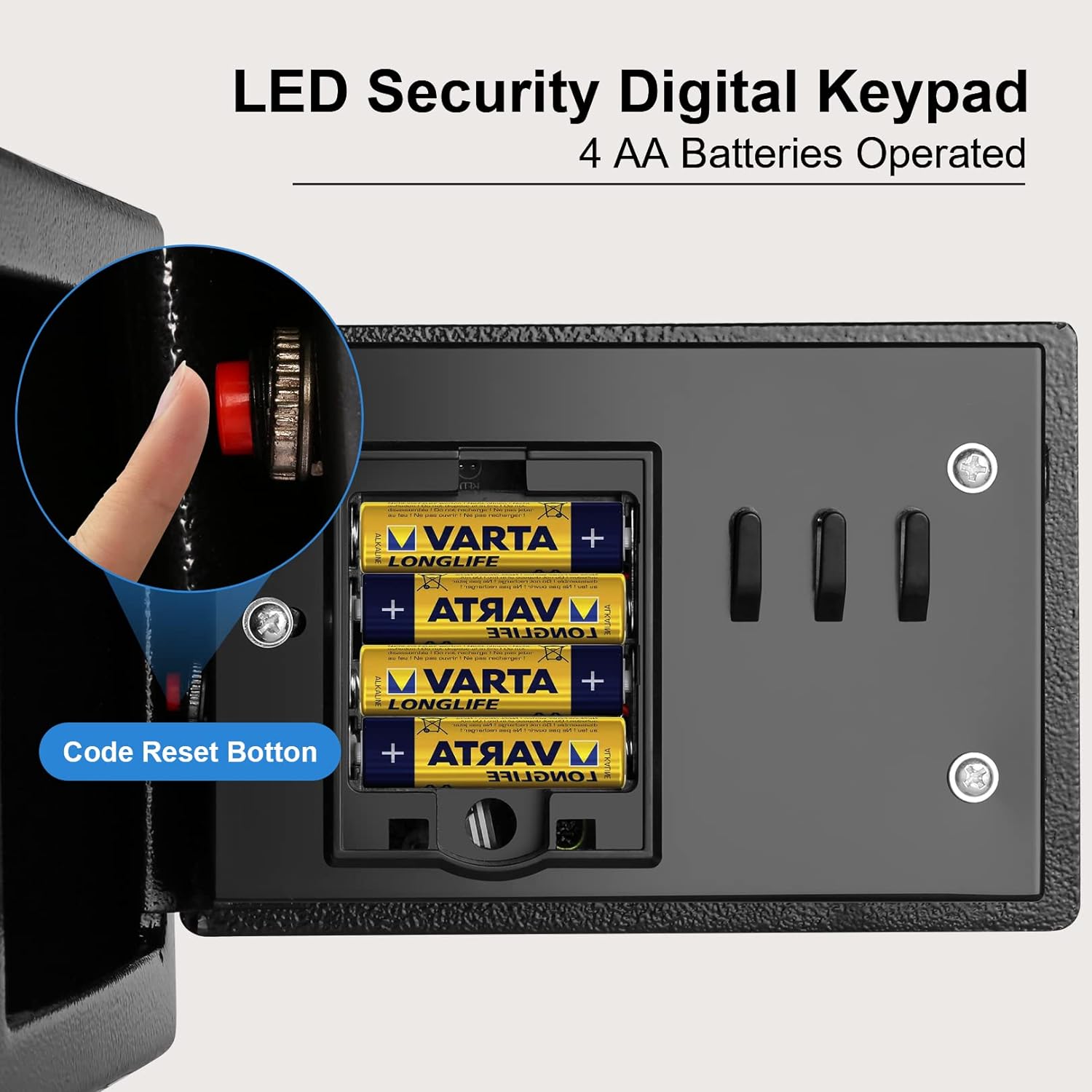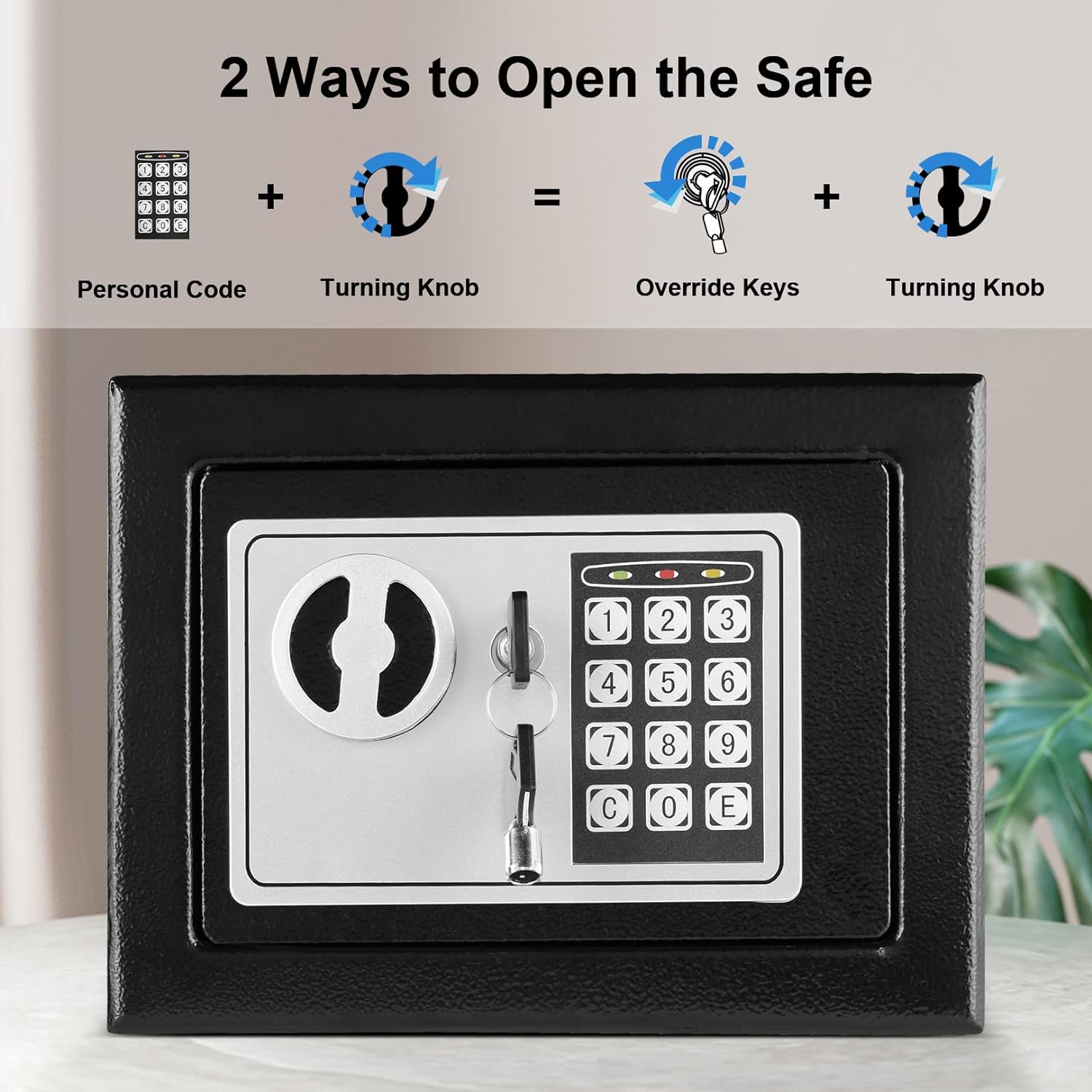 - [Kompakt & Versteckt Elektronischer Tresor] Produktgrösse: 23 x 17 x 17 cm, Fassungsvermögen: 6,65 L. Lösen Sie sich von der sperrigen Form herkömmlicher Tresore und sparen Sie Platz mit seiner kleinen und kompakten Grösse. Lässt sich leicht in