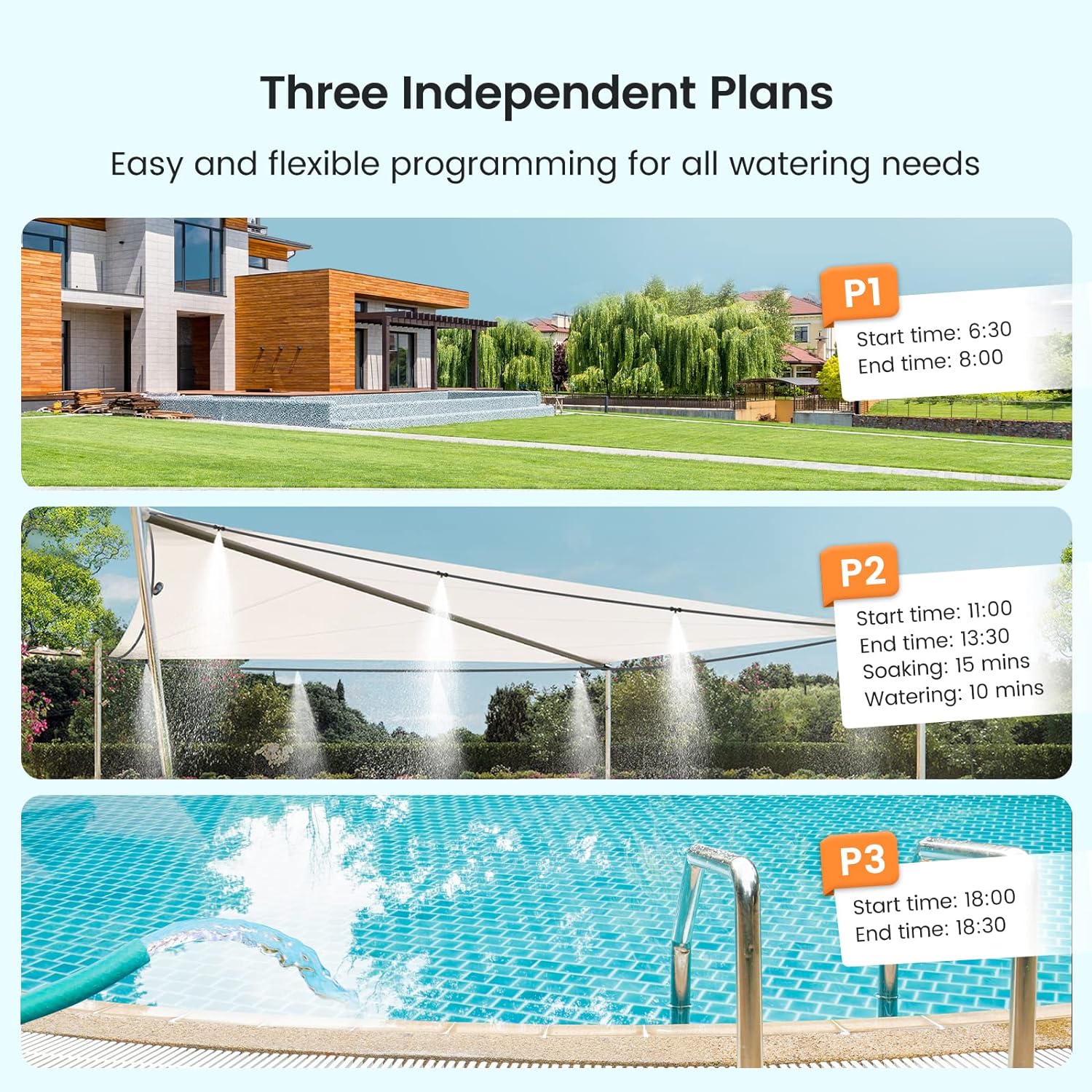 - Einfache und flexible Programmierung: Dieser programmierbare Bewässerungstimer verfügt über eine Einweichfunktion, ein vorteilhafteres und wissenschaftlicheres intermittierendes Bewässerungsprogramm als kontinuierliche Bewässerung. Es unterstützt