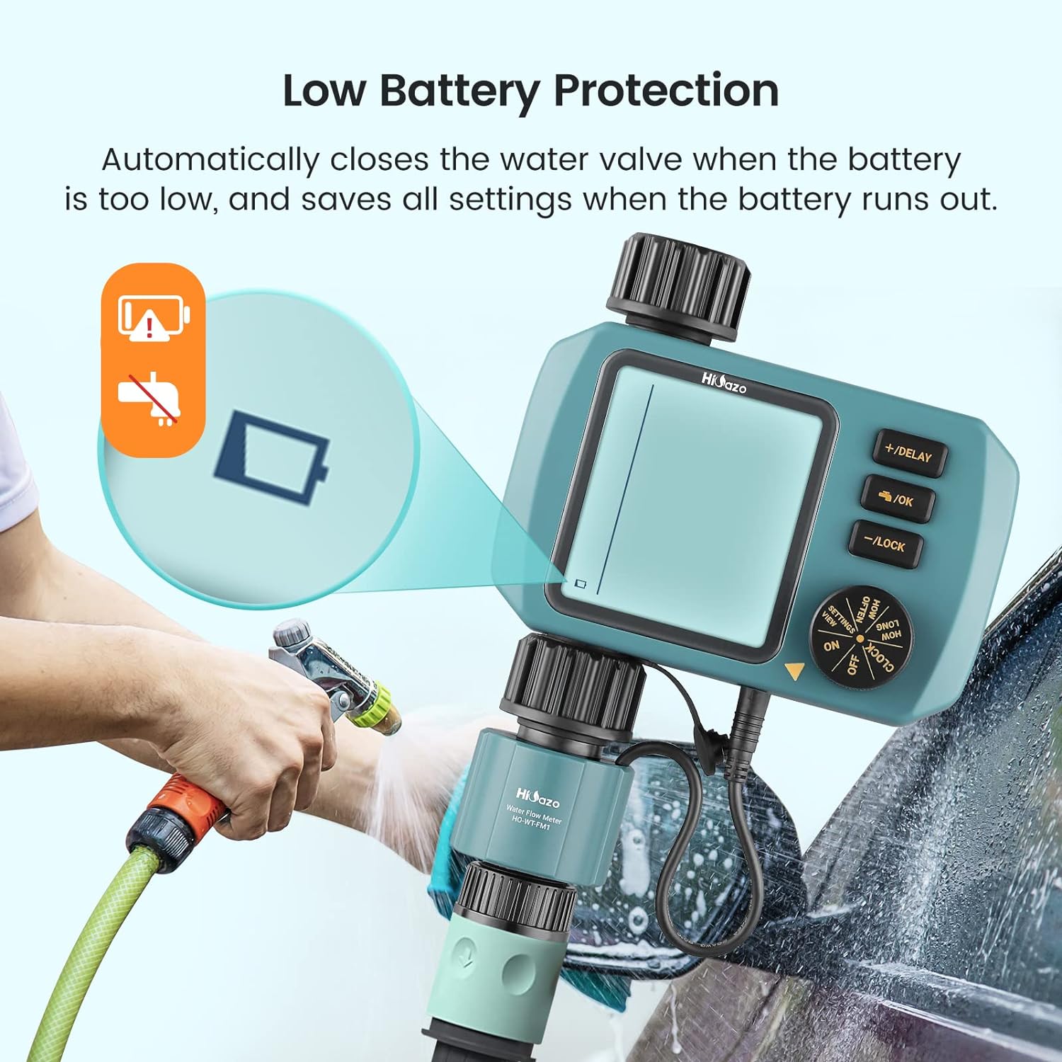 - Schutz vor niedrigem Batteriestand: Es verfügt über eine Schutzfunktion bei niedrigem Batteriestand, die das Wasserventil automatisch schliesst, wenn die Batterieleistung niedrig ist, wodurch ein Durchgehen des Wassers verhindert und Geld bei Ihrer