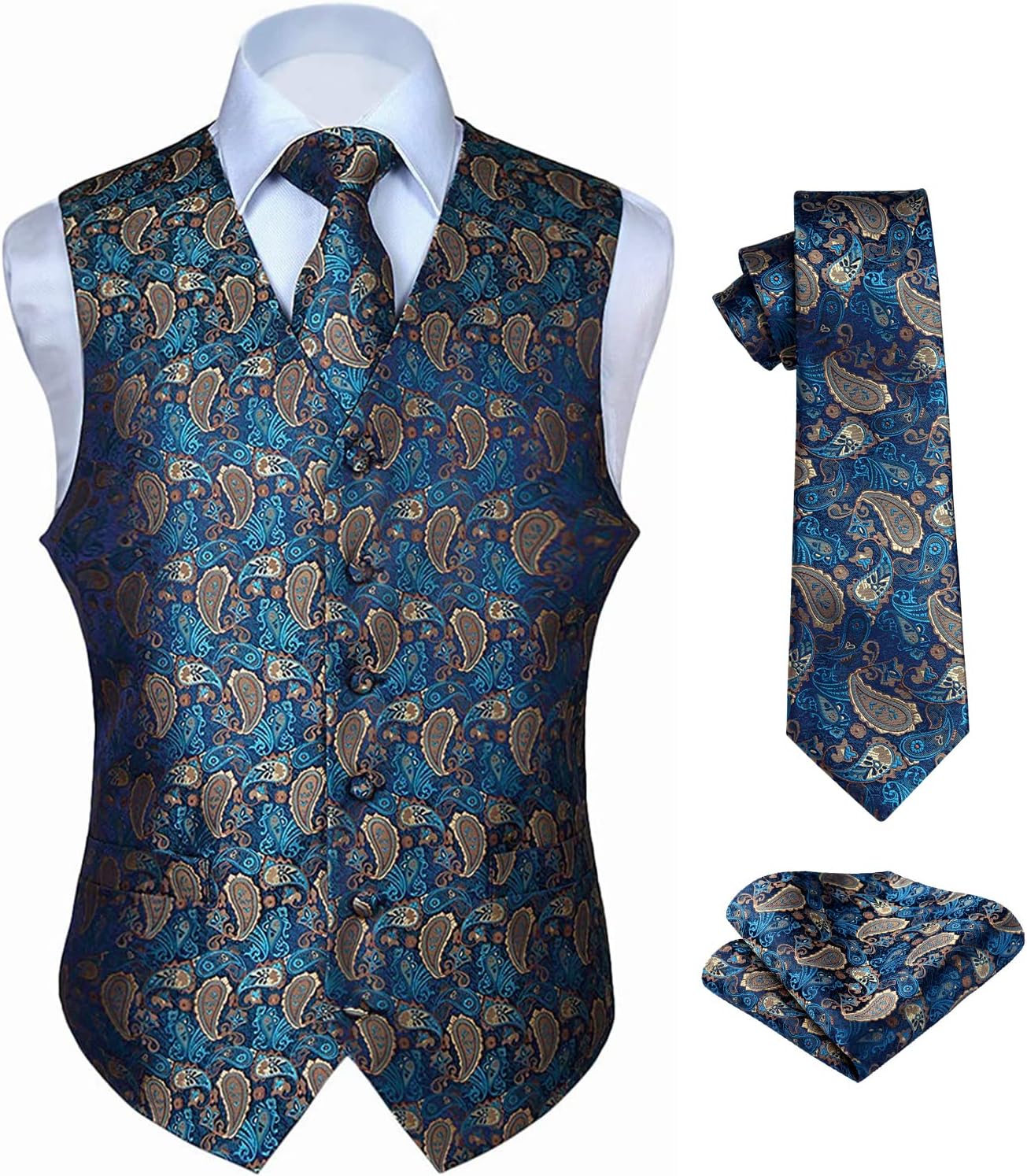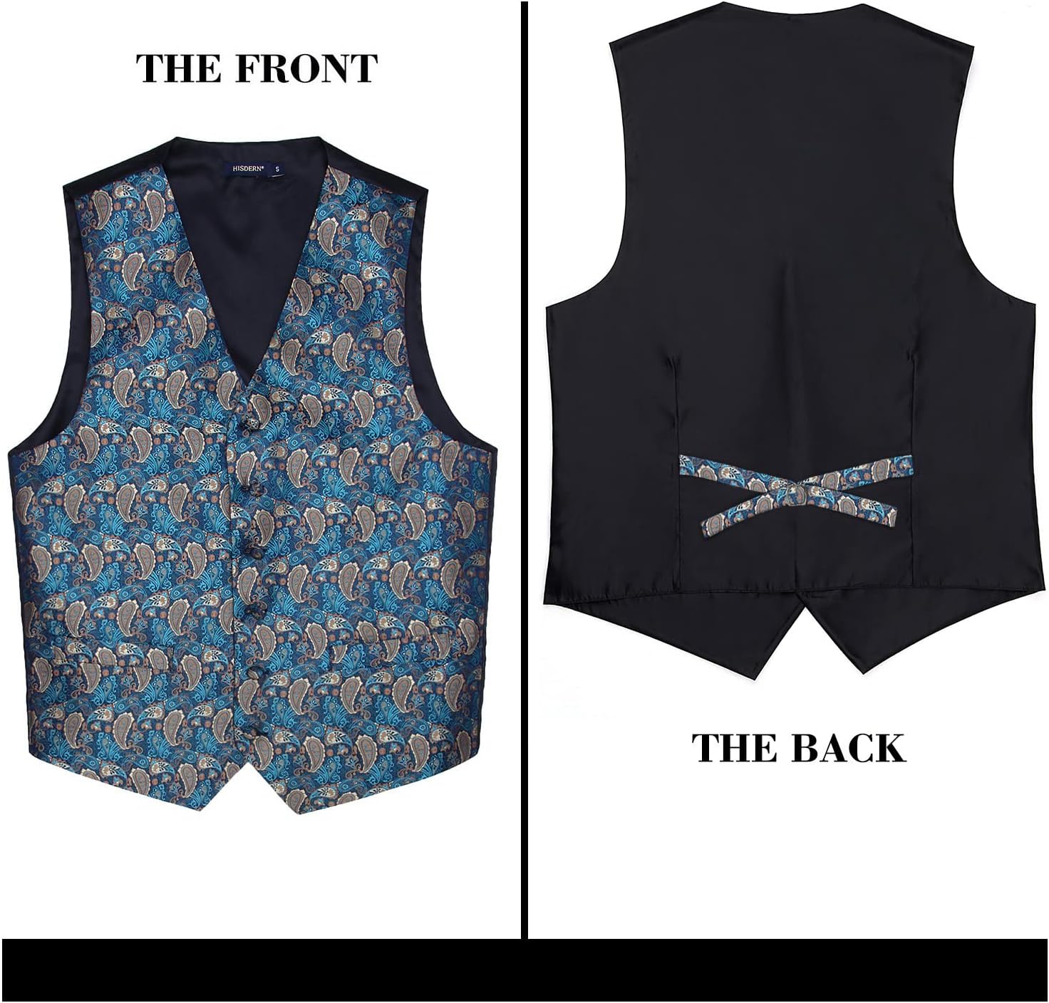HISDERN Herren FLoral Hochzeit Weste Krawatte Einstecktuch Taschentuch Jacquard Weste Anzug Set M Aq
