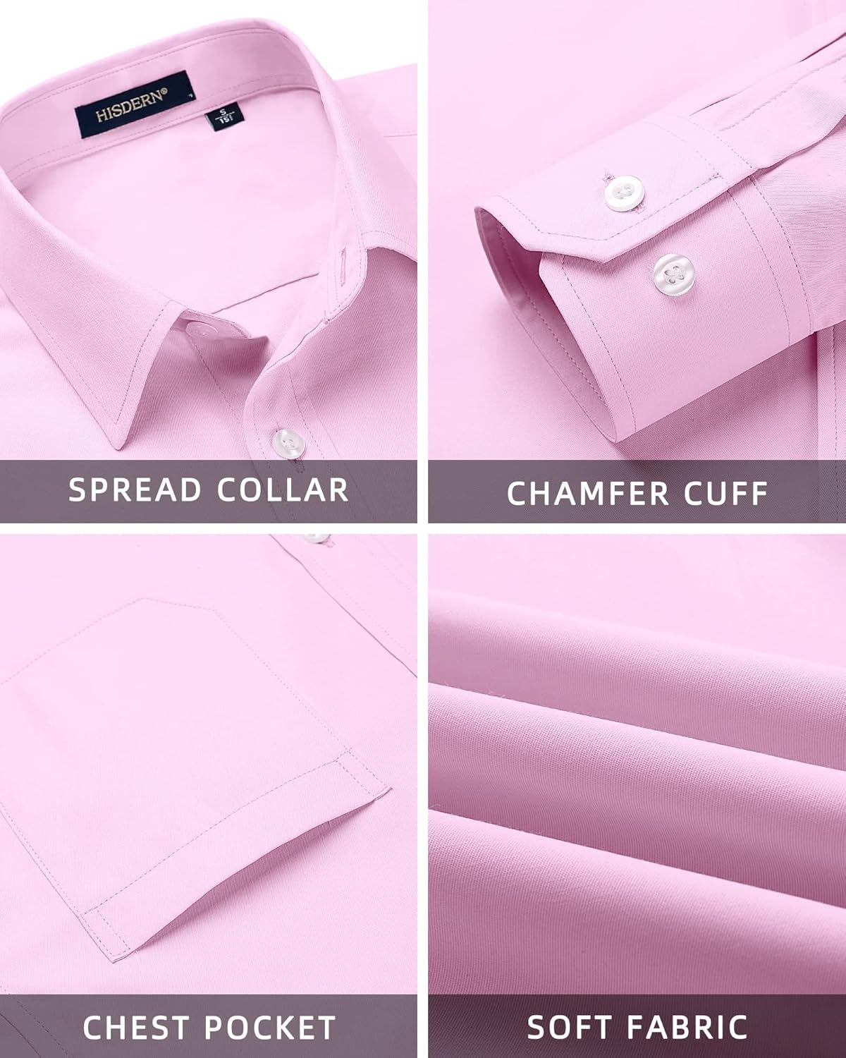HISDERN Herren Hemd Langarm Einfarbige Hemden mit Krawatte und Taschentuch Formelle Businesshemd Hoc