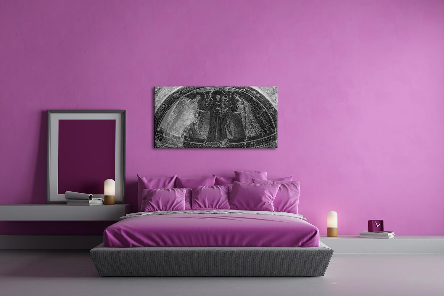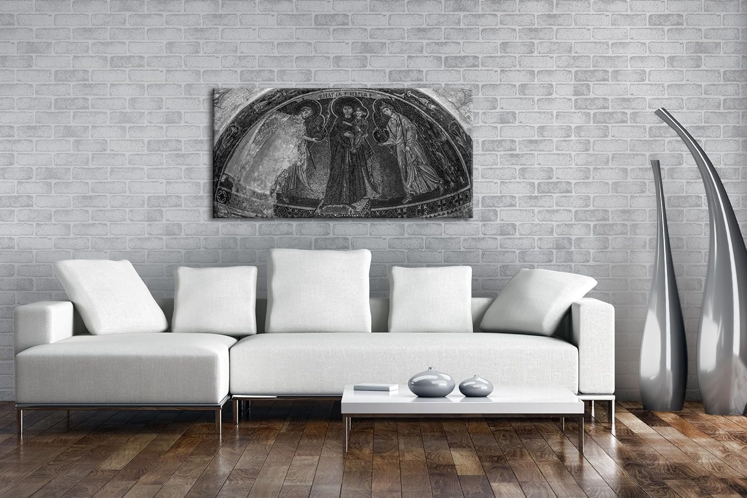 Historische Architektur des Christentums Panorama 80x40 cm Effekt: Schwarz/Weiss als Leinwandbild, M
