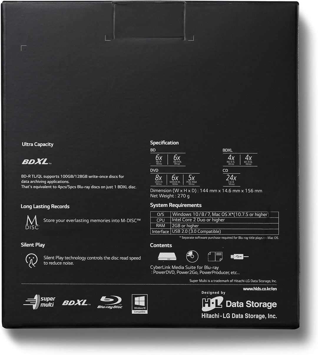 - M-DISC Unterstützung für überlegenen Datenschutz - nutzt eine patentierte, steinähnliche Aufzeichnungsoberfläche anstelle von organischem Farbstoff, um Ihre Daten auf eine Disk zu ätzen