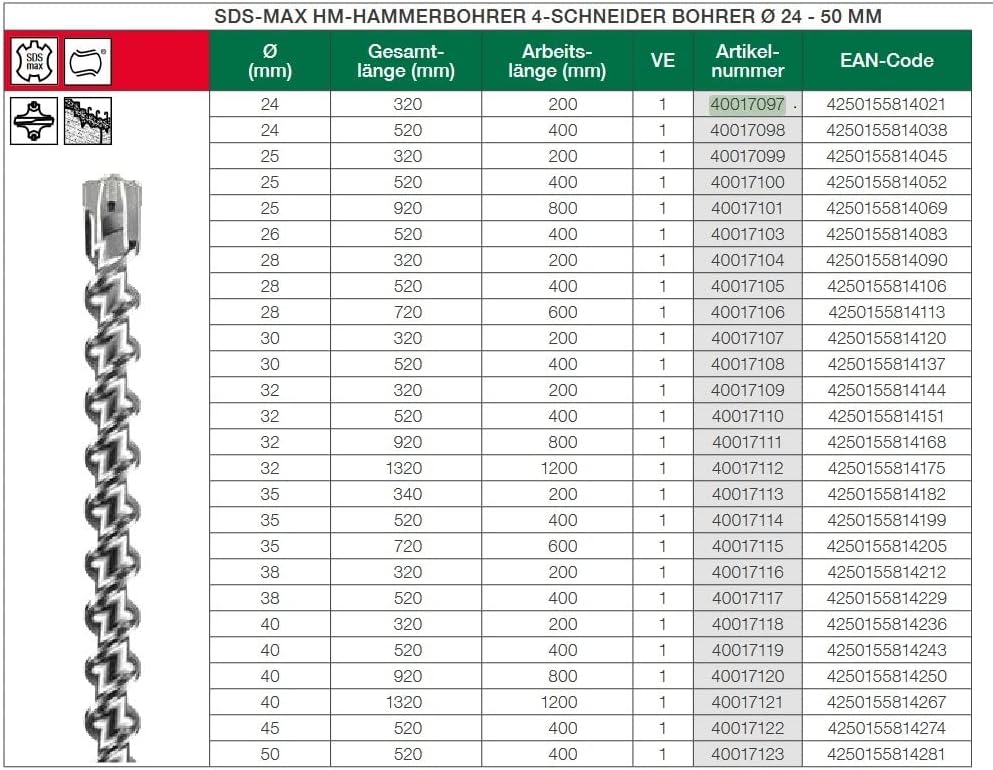 HitachiHIKOKI SDS-Ma x -Bohrer Power Super 25 x 400 mm (GL520 mm)