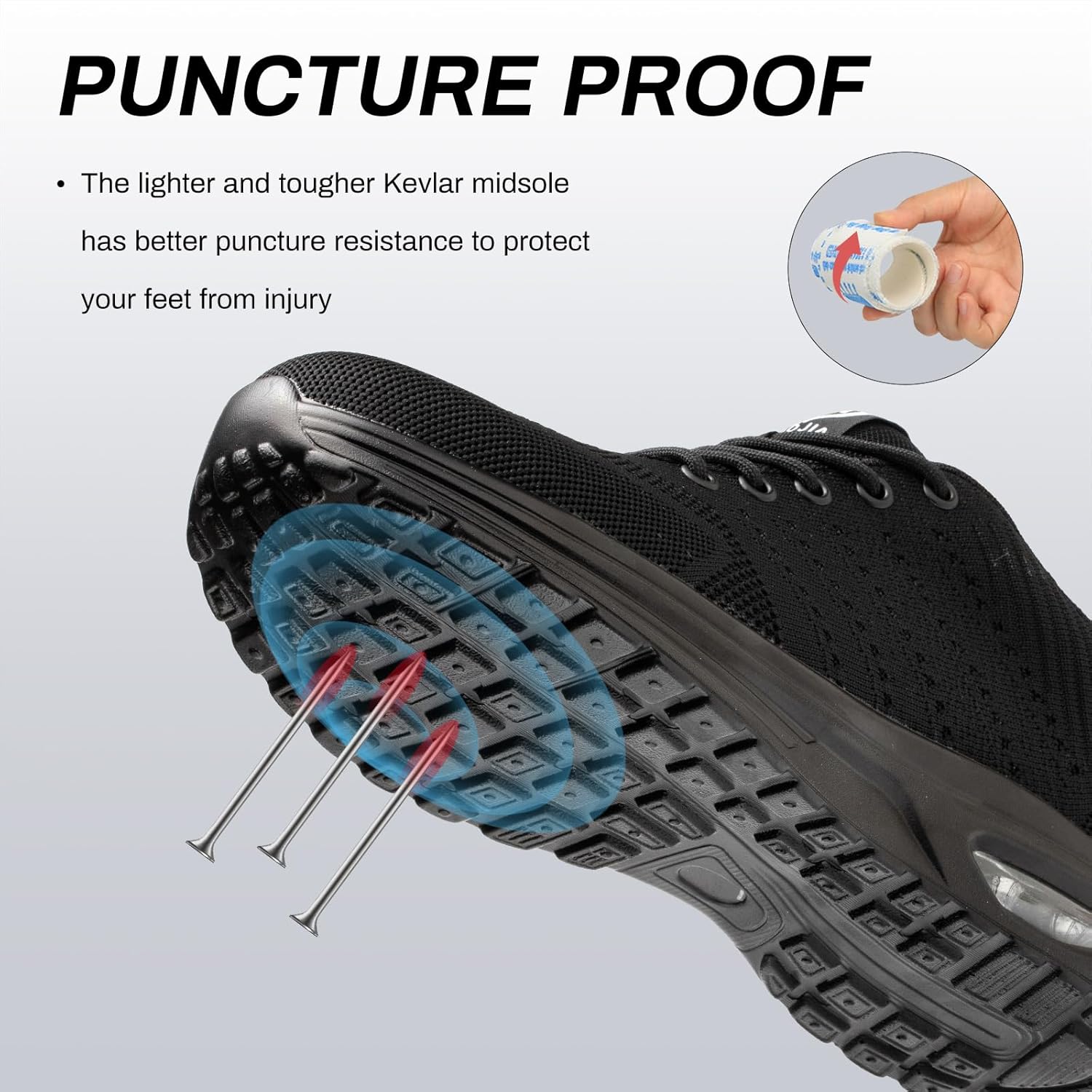 - 【DURCHTRITTSICHER】Die Arbeitsschuhe mit durchtrittsicherer Kevlar-Zwischensohle können verhindern, dass Produktions-, Bau- oder Haushaltsabfälle die Sohle durchstossen.