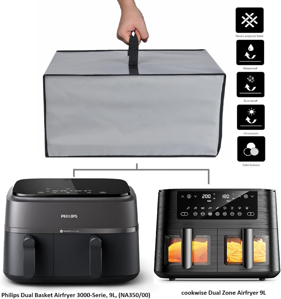 - Wasserdichte Nylon-Staubschutzhülle für cookwise AF2-40D06/Philips Dual Basket Airfryer 3000-Serie(NA350/00), 9L,Heissluftfriteuse und andere Modelle (bitte beachten Sie die folgende Grösse)