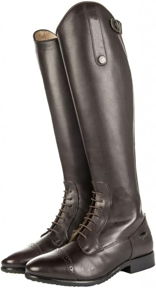 - Reitstiefel mit grosszügigem Elastikeinsatz, Reissverschluss hinten, Druckknopfsicherung und Schnellschnürung