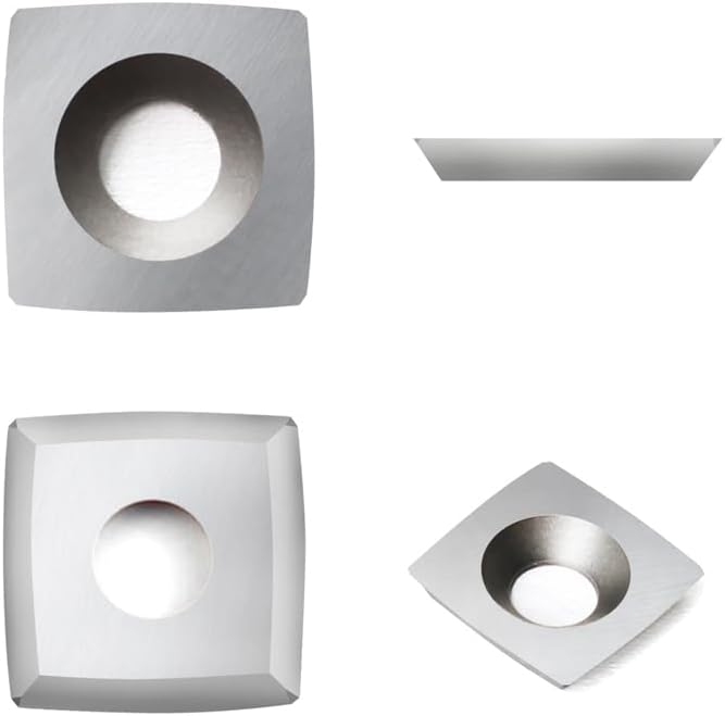 - Grösse: 11 mm Länge x 11 mm Breite x 2,0 mm Dicke, 4 Wendeschneidplatten mit R50-Radiuskante, 30 ° Schneidwinkel, ein Senkloch, Finisher Hollower Drechselbank oder Holzbearbeitungshobel usw.