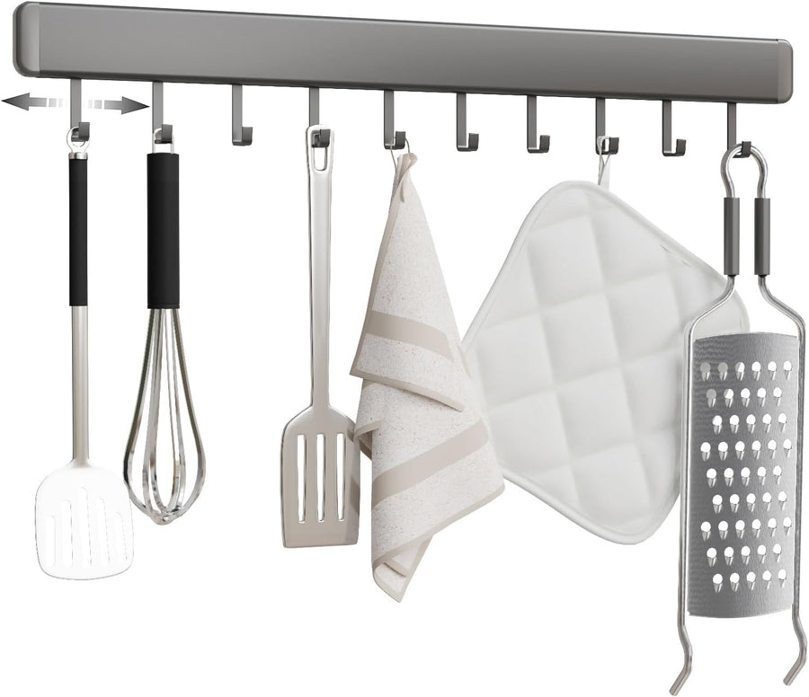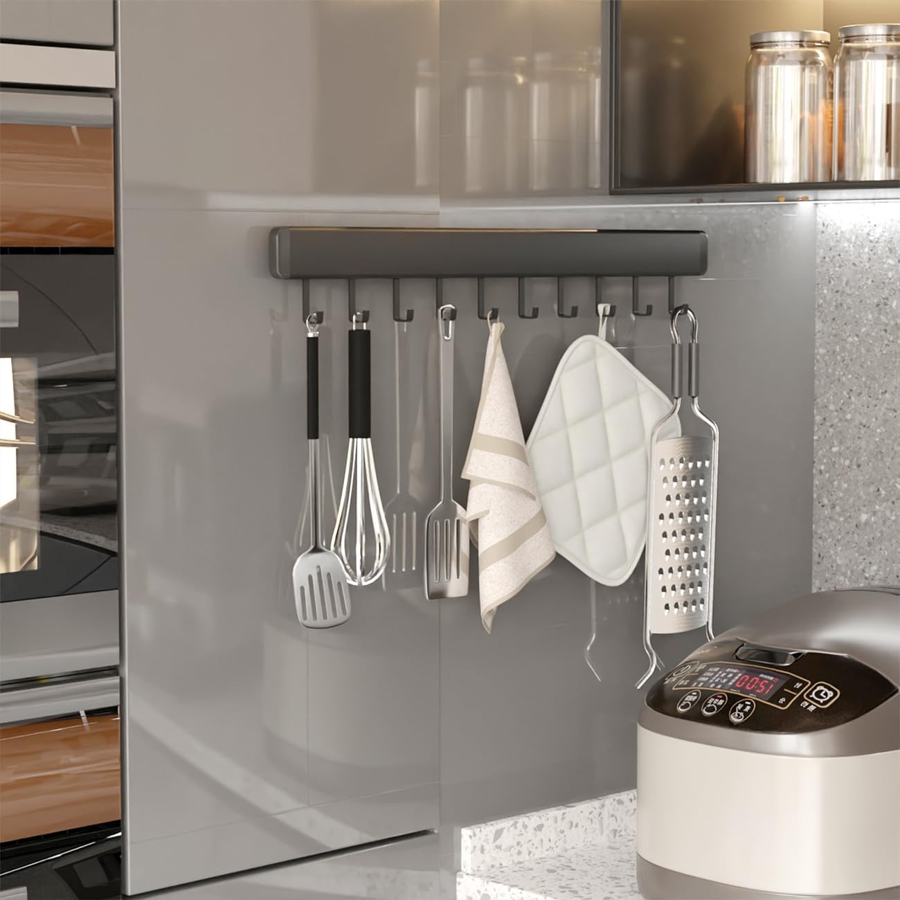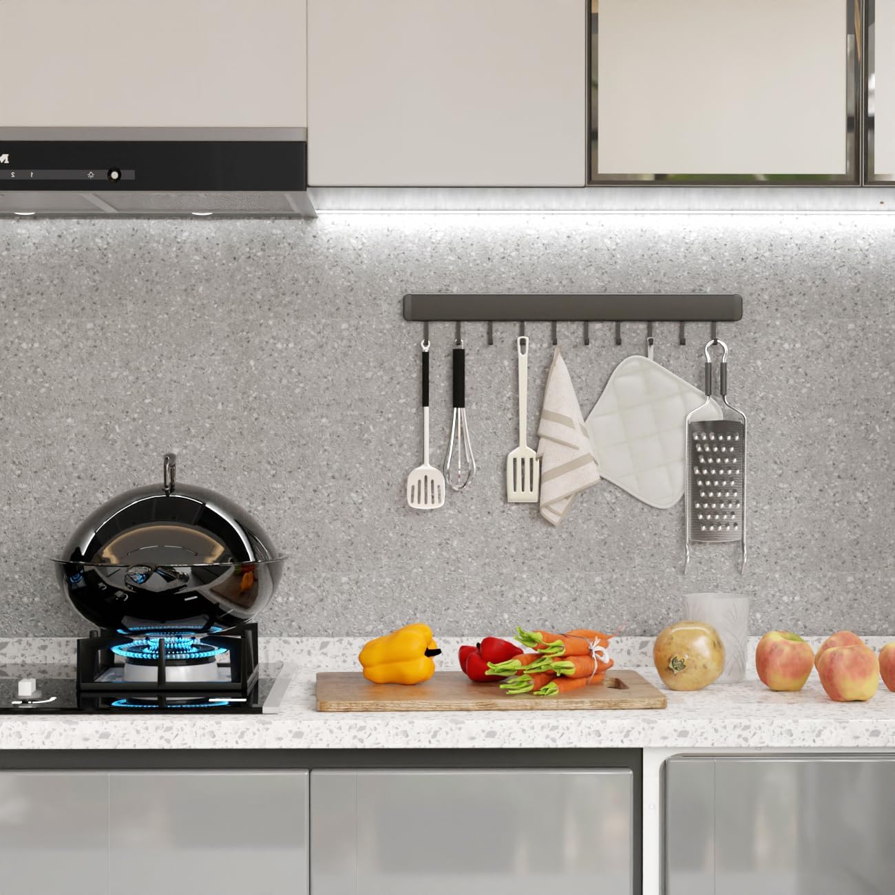 HMAKGG Hakenleiste Küche ohne Bohren, 50CM Küchenleiste Selbstklebend mit 10 Beweglichen Haken, Küch