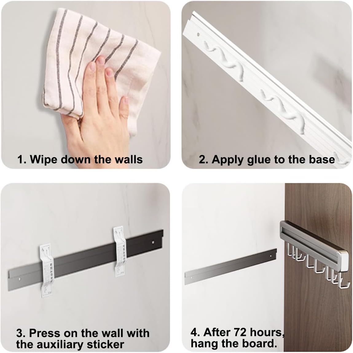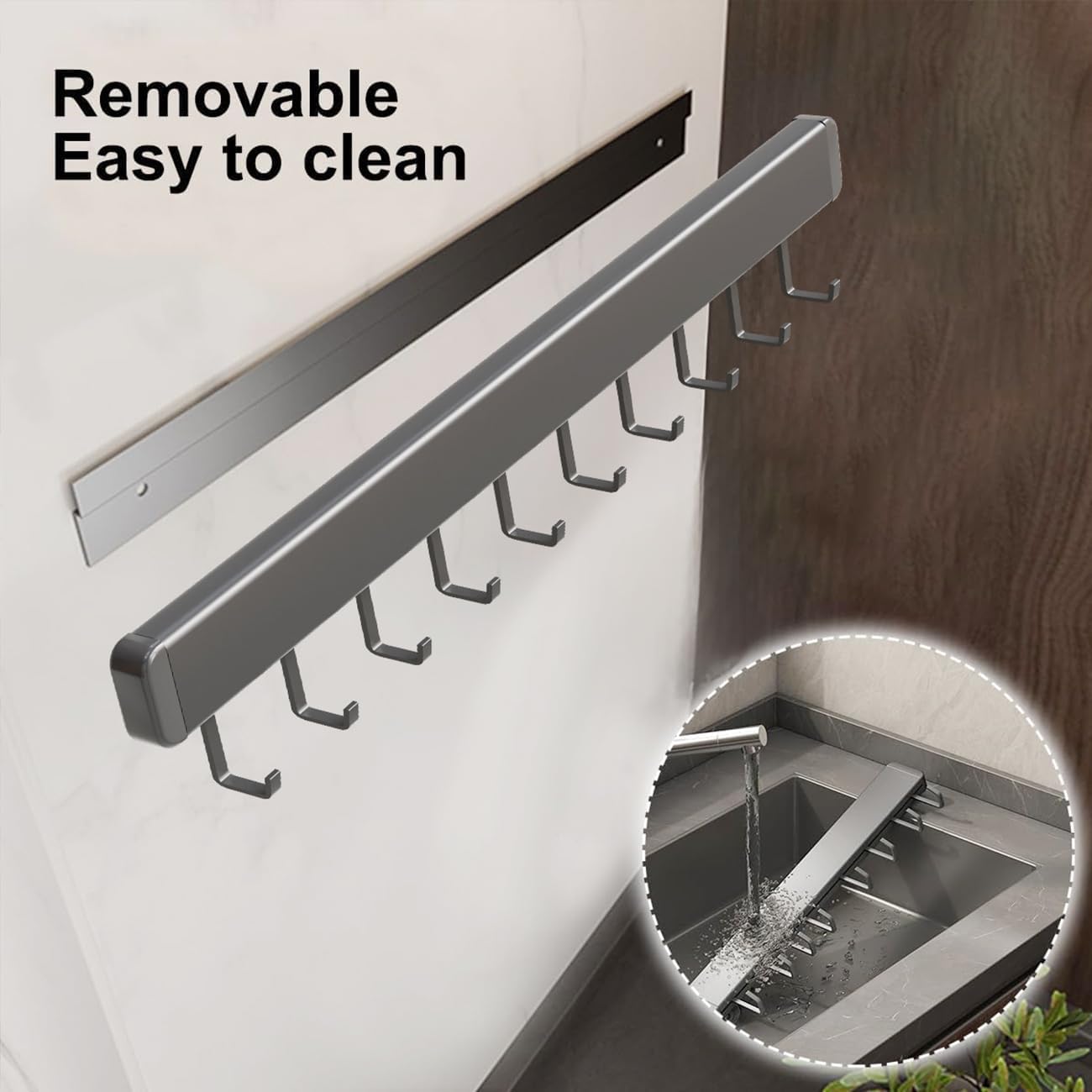 • Flexible Einsetzbarkeit - Dies ist eine flexible Küchenschiene, Sie können den Abstand zwischen den Haken entsprechend der tatsächlichen Grösse anpassen. Die Haken fallen nicht mit dem Geschirr herunter, der leicht verschoben werden kann