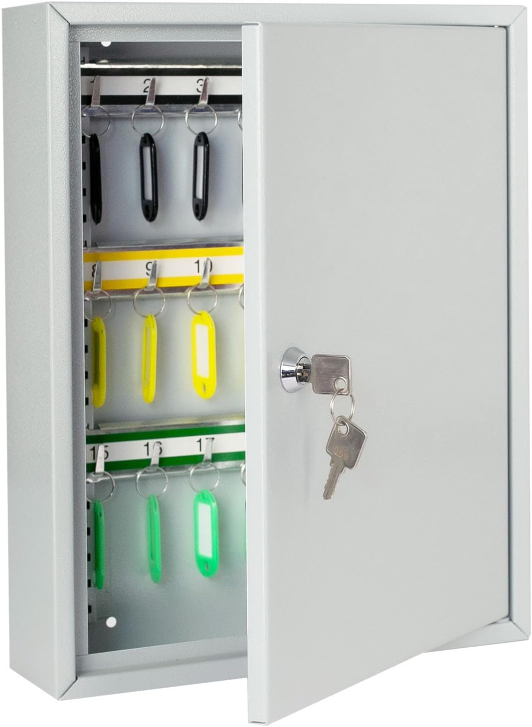 • Schlüsselschrank 42 Haken, Rumpf und Tür aus robustem Stahlblech, höhenverstellbare Hakenleisten