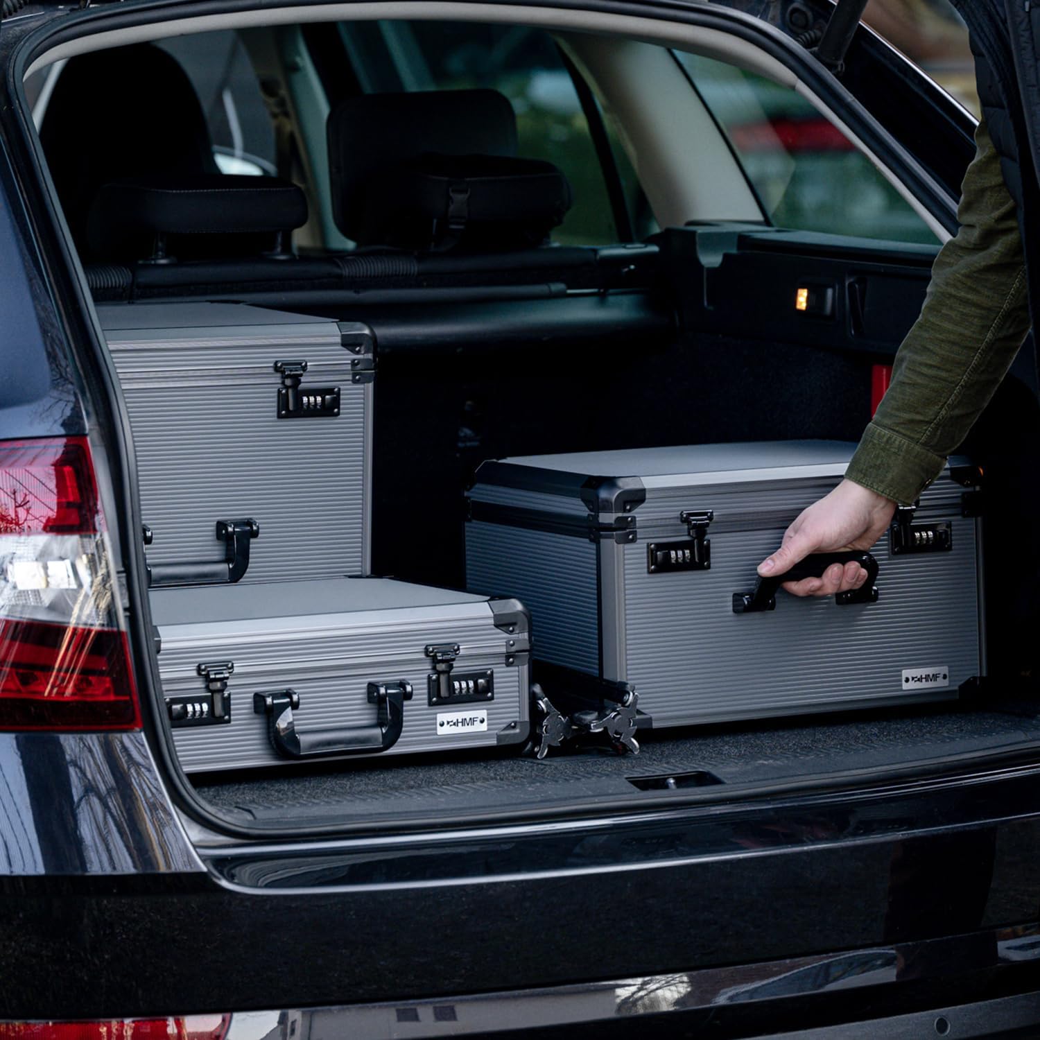 - Praktisch - Transportkoffer mit ergonomischen Tragegriffen und verstärktem Aluminiumrahmen für hohe Stabilität