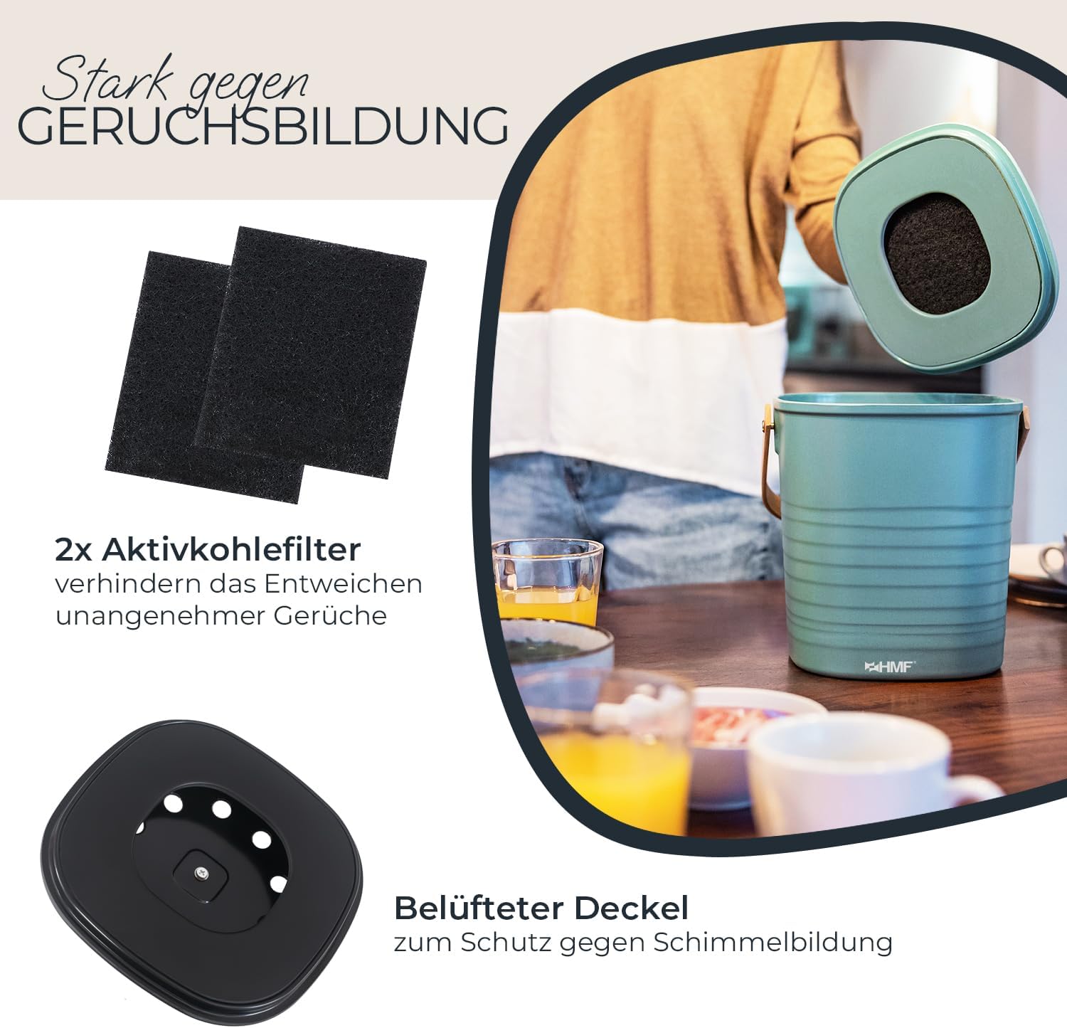 - Geruchsdicht - Kleiner Abfalleimer für Biomüll mit Aktivkohlefilter im Deckel gegen unangenehme Gerüche