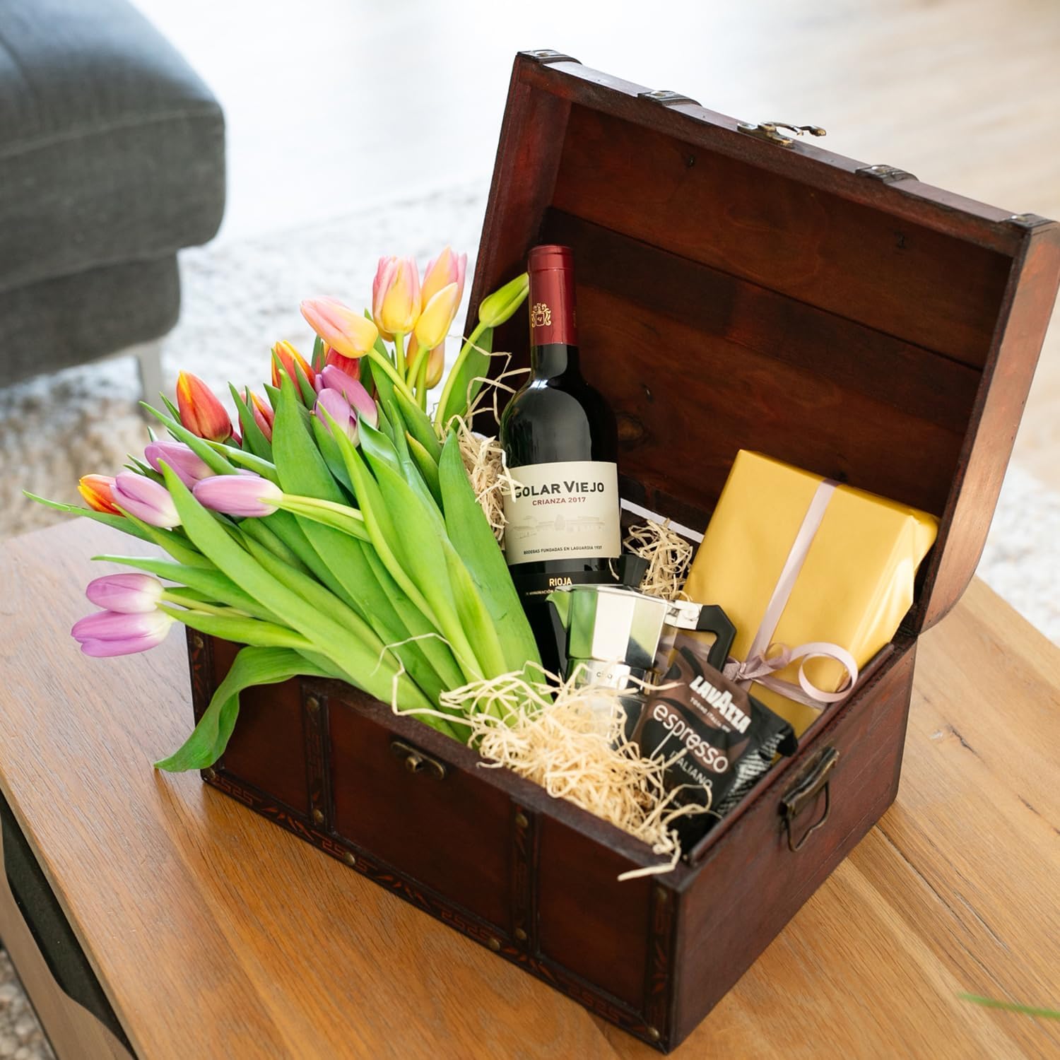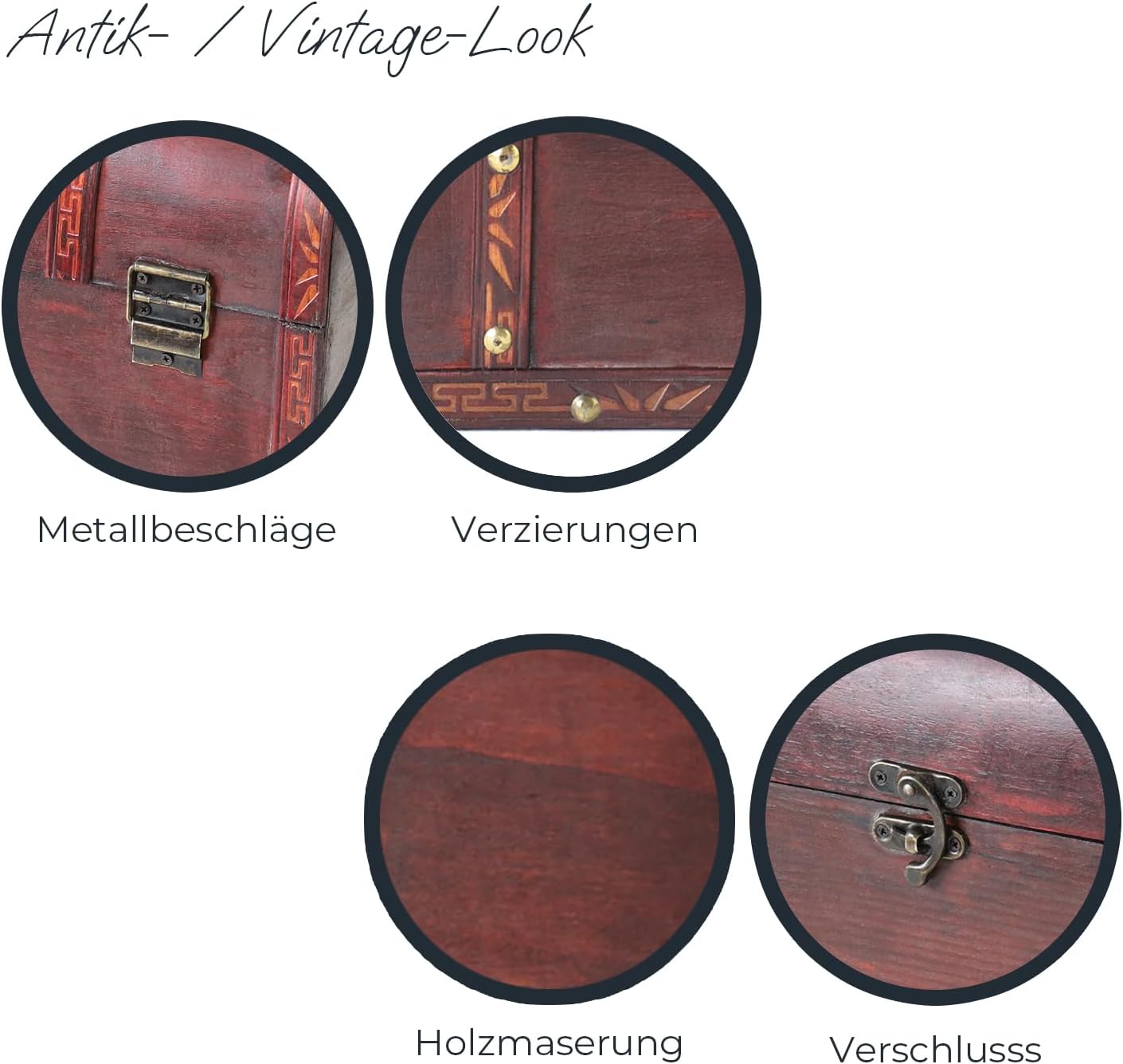 - Dekorativ - Ein echter Hingucker dank liebevoller Details wie Metallbeschläge, Holzmaserung und Verzierungen