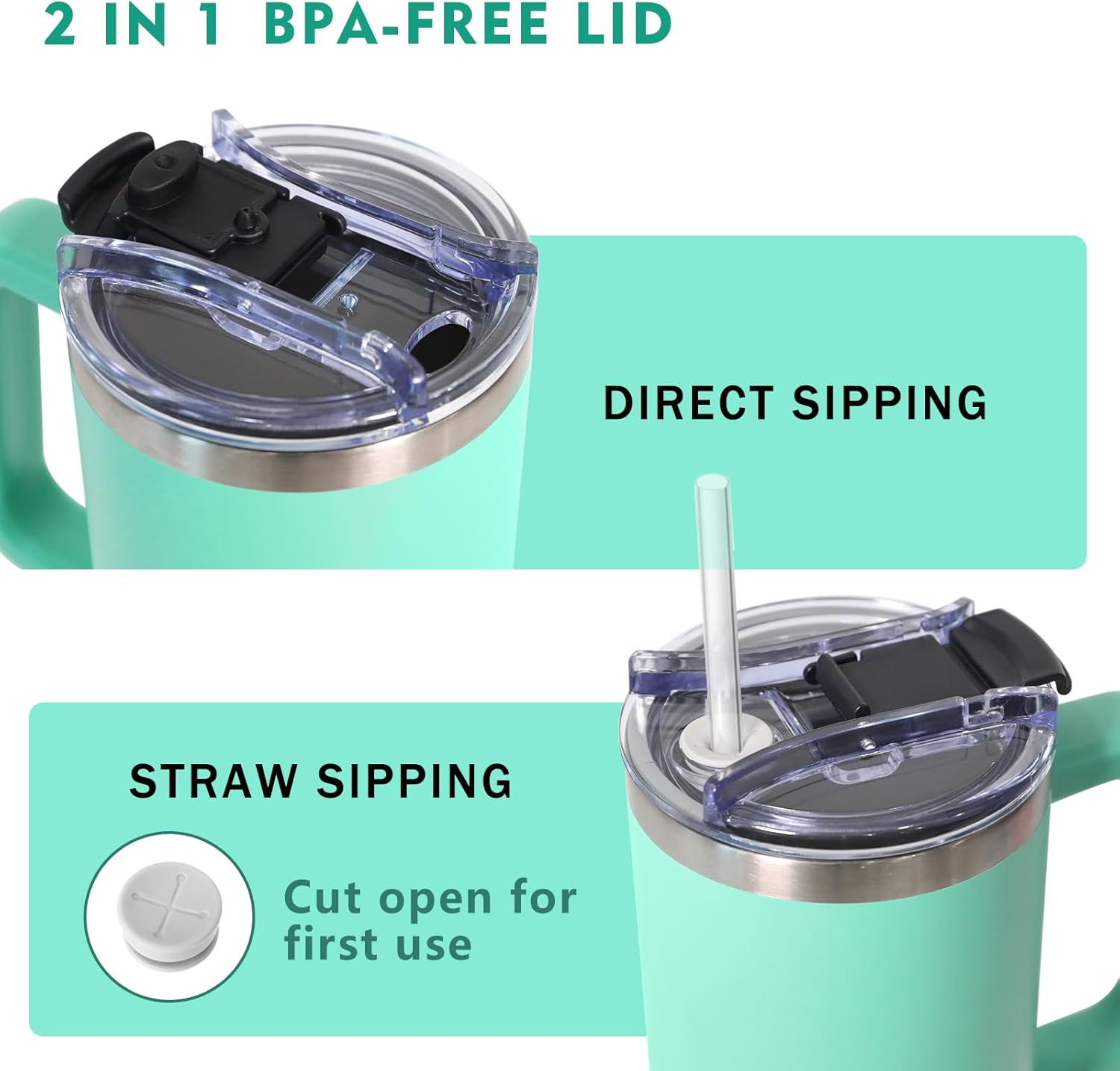 - 【Vielseitiger Deckel mit Zwei-in-Eins-Funktion】Der Deckel ist mit einer praktischen Zwei-in-Eins-Funktion ausgestattet, die als sowohl als Trinkhalm als auch für direktes Trinken genutzt werden kann. Im Lieferumfang ist ein abnehmbarer Strohhalm