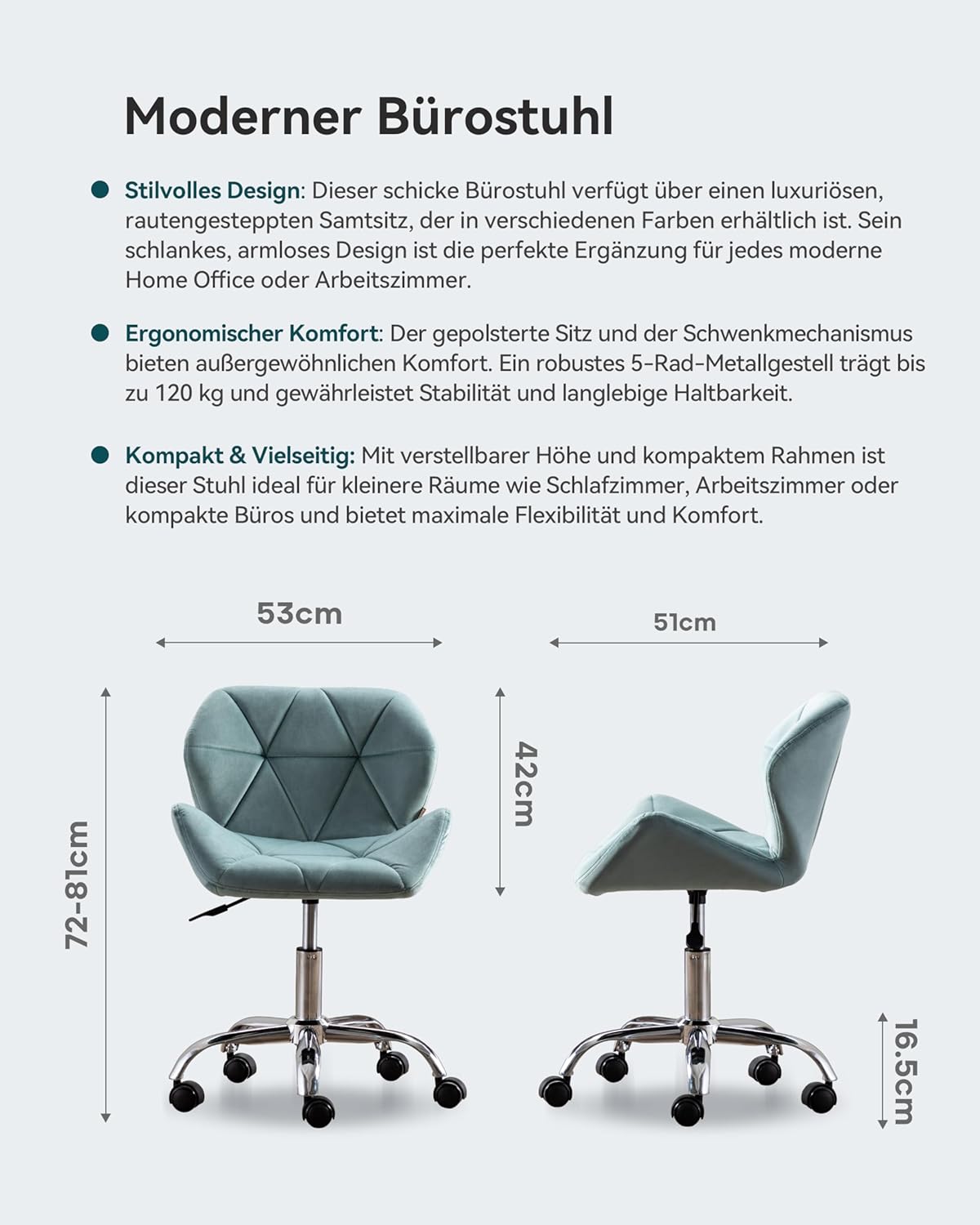 - Gepolsterter Sitz, armloses Design für einen schicken Look, geeignet für zu Hause, Schlafzimmer oder Büro.