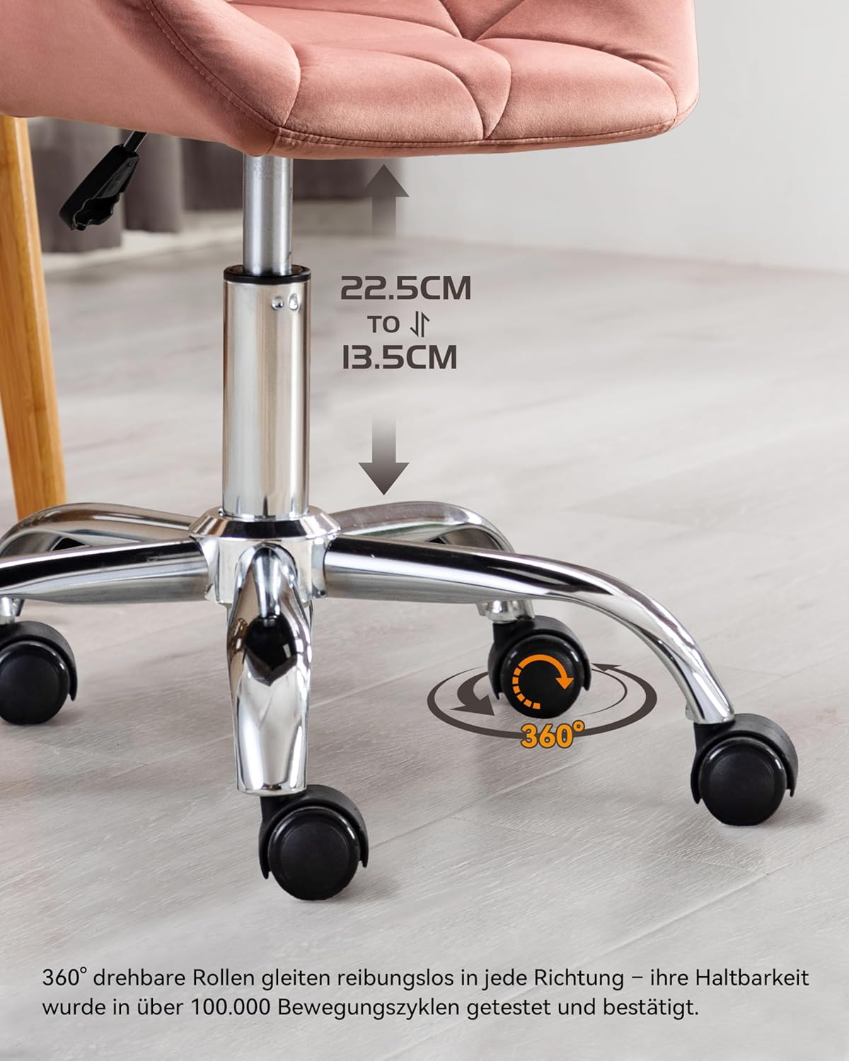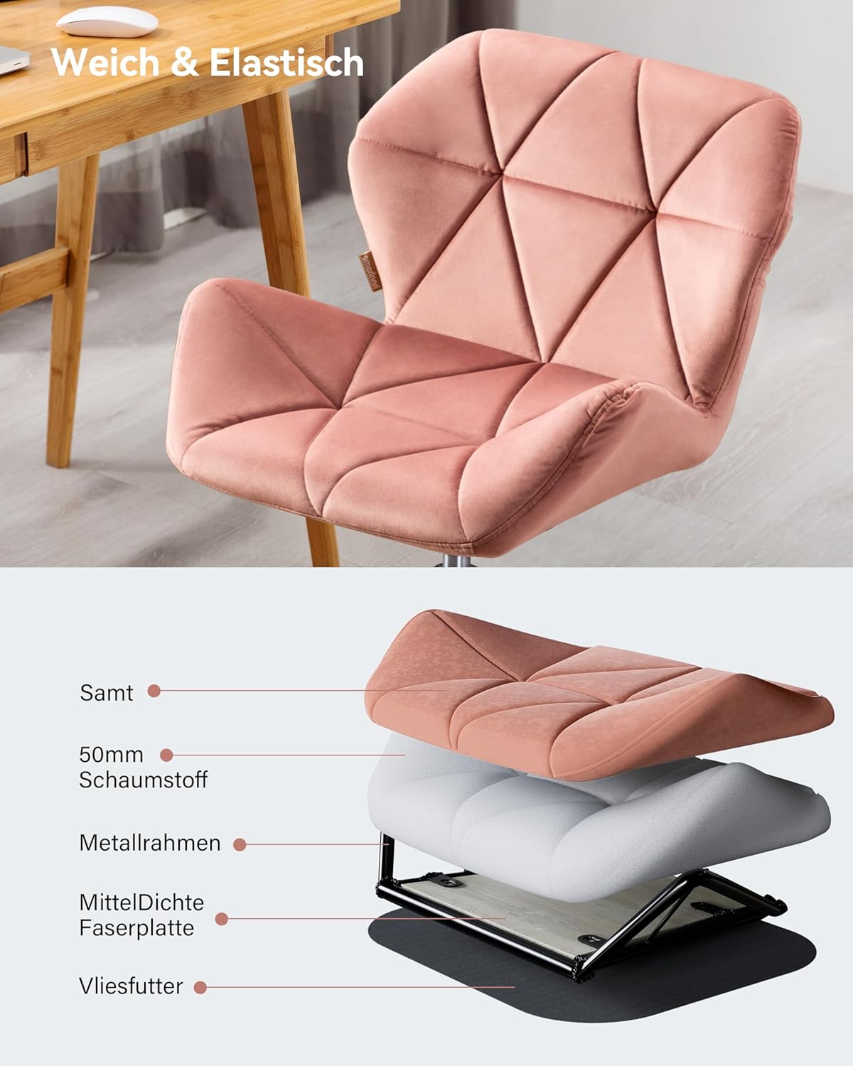 - Stilvolles modernes Design: Der Eris Schreibtischstuhl zeichnet sich durch zeitgemässes Design und gepolsterten Samtbezug aus, der Eleganz in Ihr Arbeitszimmer bringt.