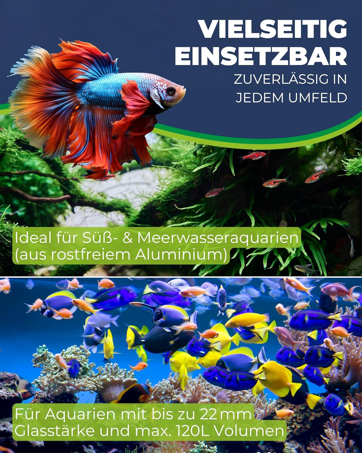 - für Glasscheiben und Aquarienabdeckungen bis 25 mm Breite