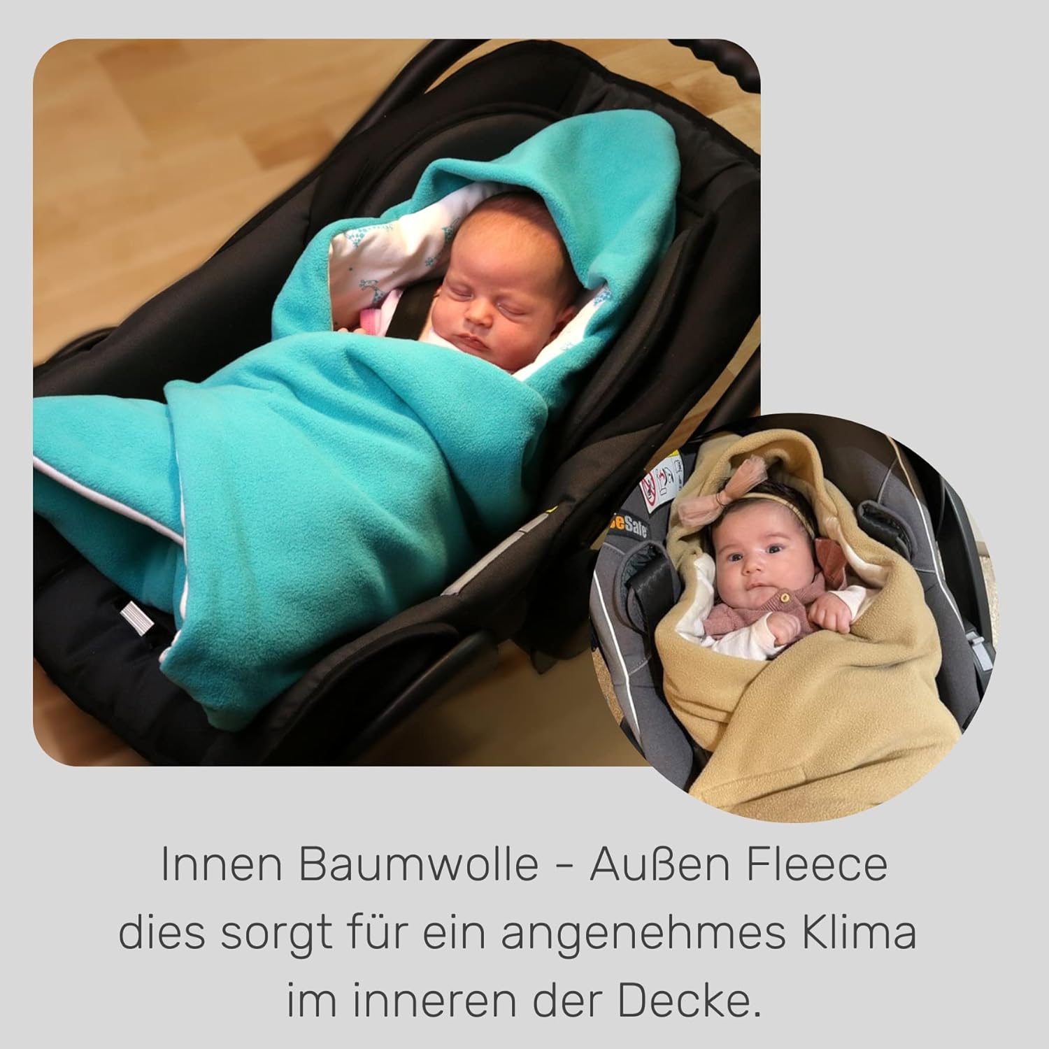 - EINSCHLAGDECKE für Babyschale, Kinderwagen, Kinder- oder Autositz. Die Decke kann als Spielunterlage oder Wickelunterlage genutzt werden - Grösse: 70 x 70 cm passend für Babys bis ca. 6 Monate.