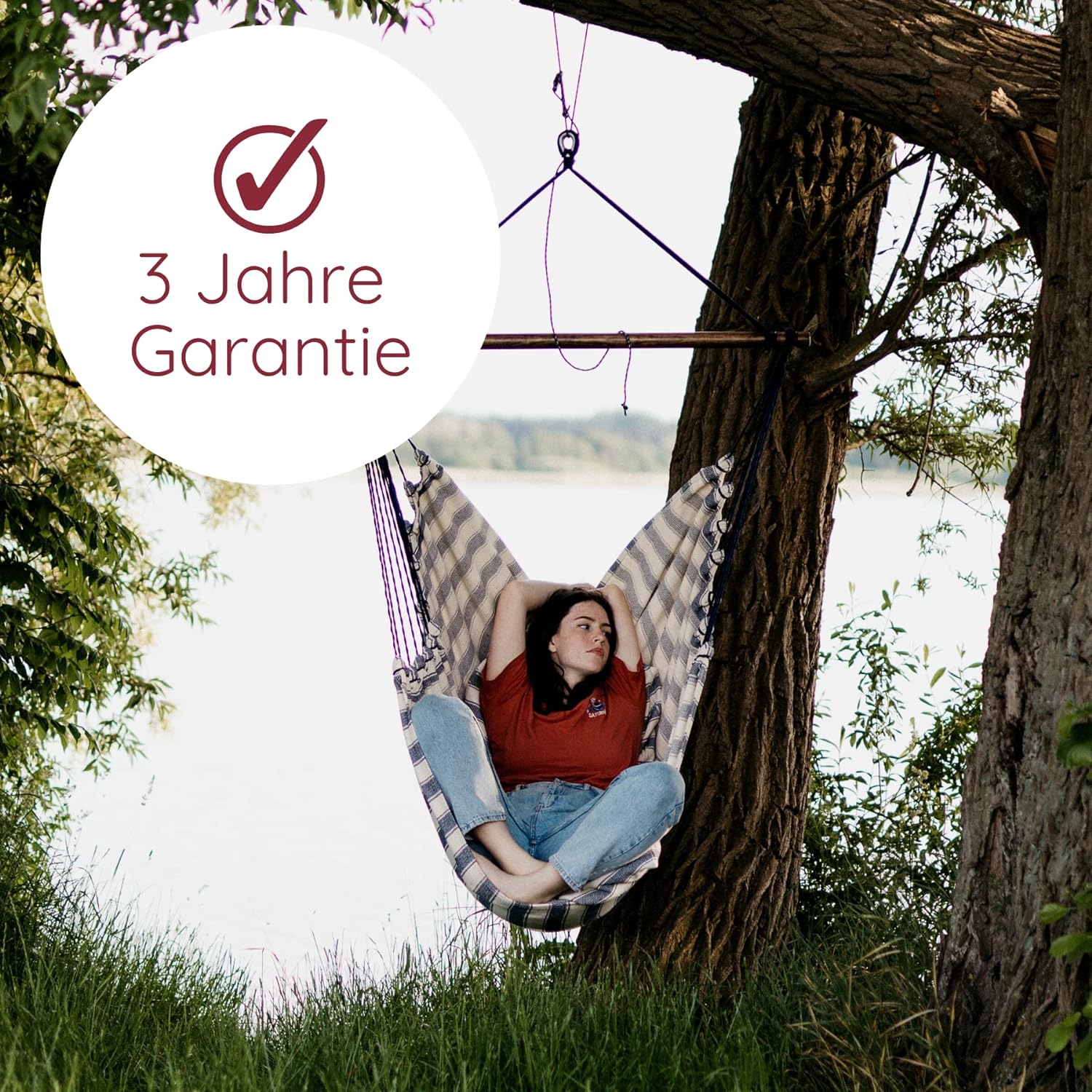 - HÄNGESESSEL FÜR ERWACHSENE besteht aus 100% gewebter Baumwolle – wir geben dir 3 Jahre Garantie. Passende Hängesessel Aufhängung von uns findest du in unserem Amazon-Store.