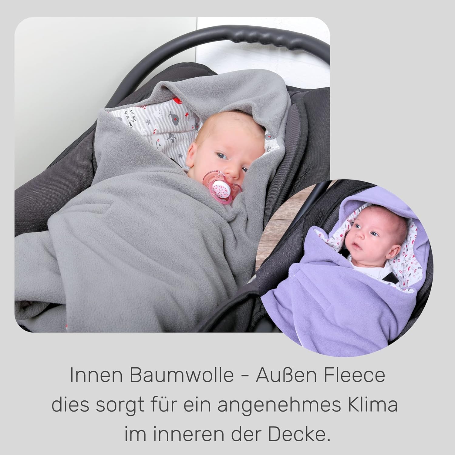 - EINSCHLAGDECKE für Babyschale, Kinderwagen, Kinder- oder Autositz. Die Decke kann als Spielunterlage oder Wickelunterlage genutzt werden - Grösse: 70 x 70 cm passend für Babys bis ca. 6 Monate.