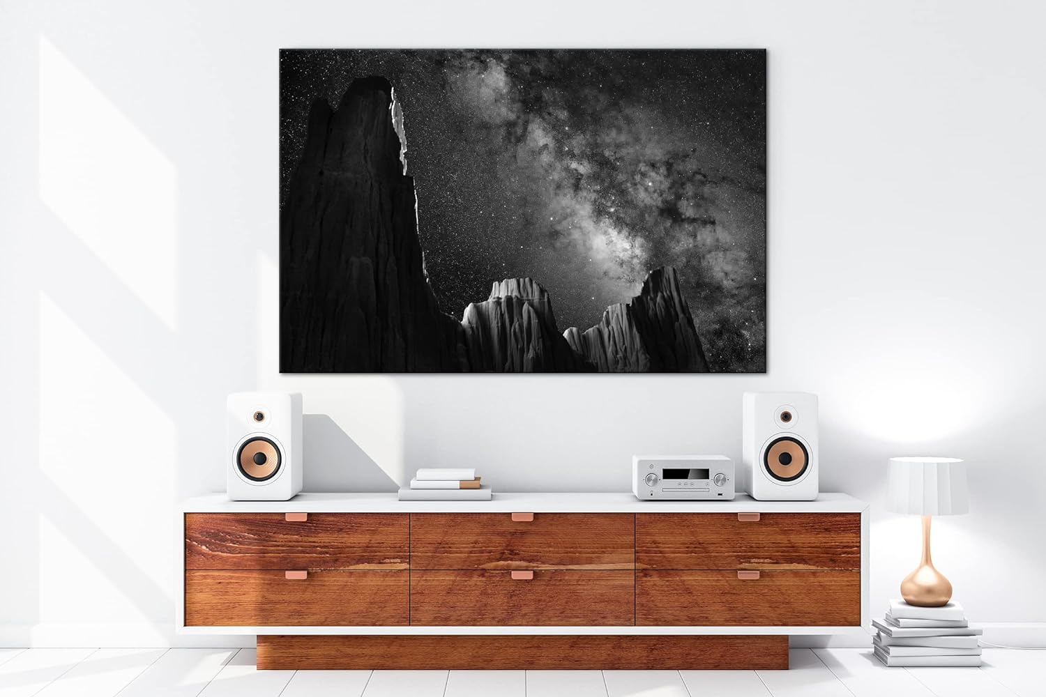 Hoch über den Bergen Effekt: Schwarz&Weiss, Format: 80x60 als Leinwandbild, Motiv fertig gerahmt auf
