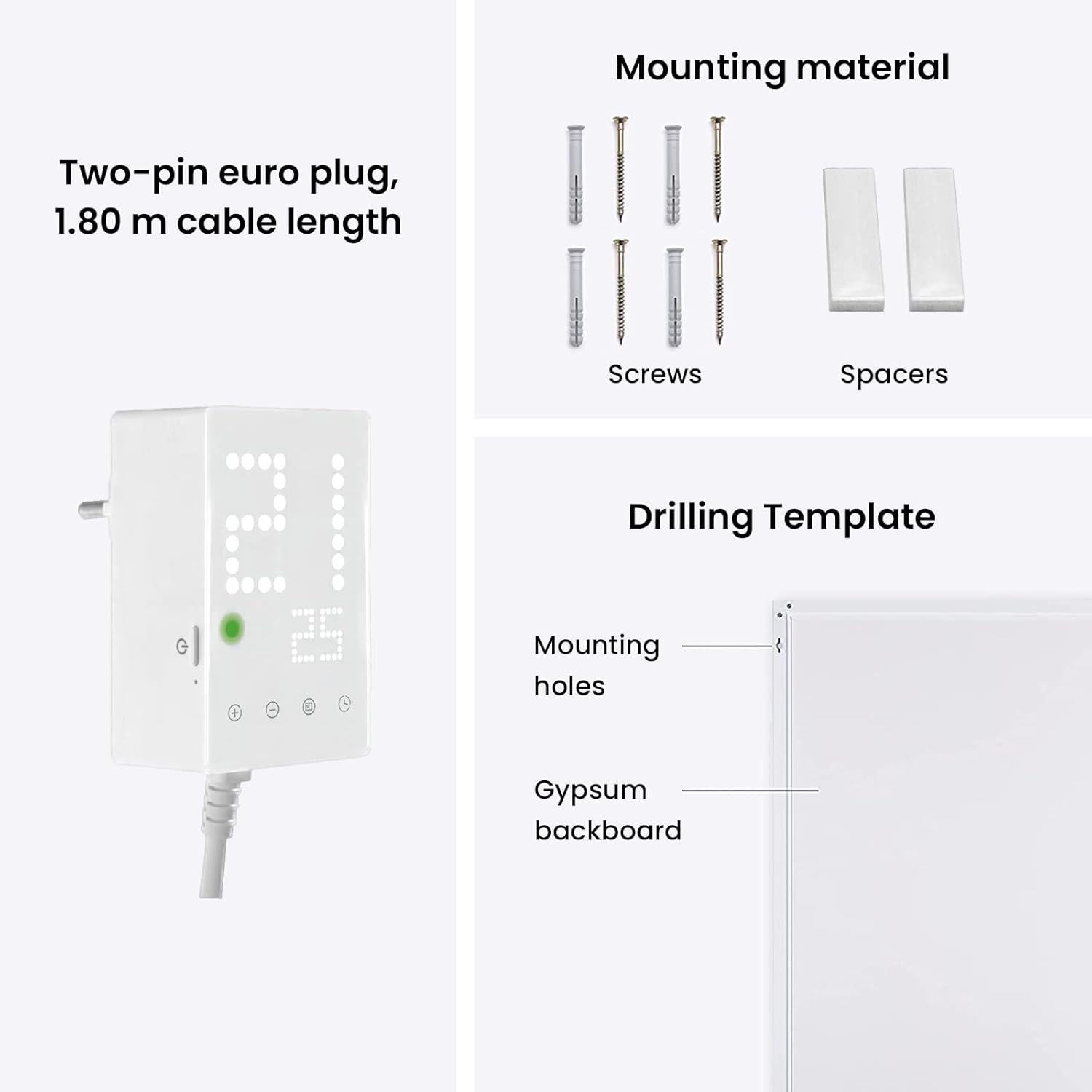 - 🔥Einfach zu Installieren – Lieferung mit Befestigungsschrauben, 1,8 m Sicherheitskabel, rundem Rahmen aus Vollaluminiumlegierung und isolierter flammhemmender Gipsrückwand. TÜV-zertifiziert, Überhitzungsschutz, 100 % sicher. Hocosyme Standfüsse