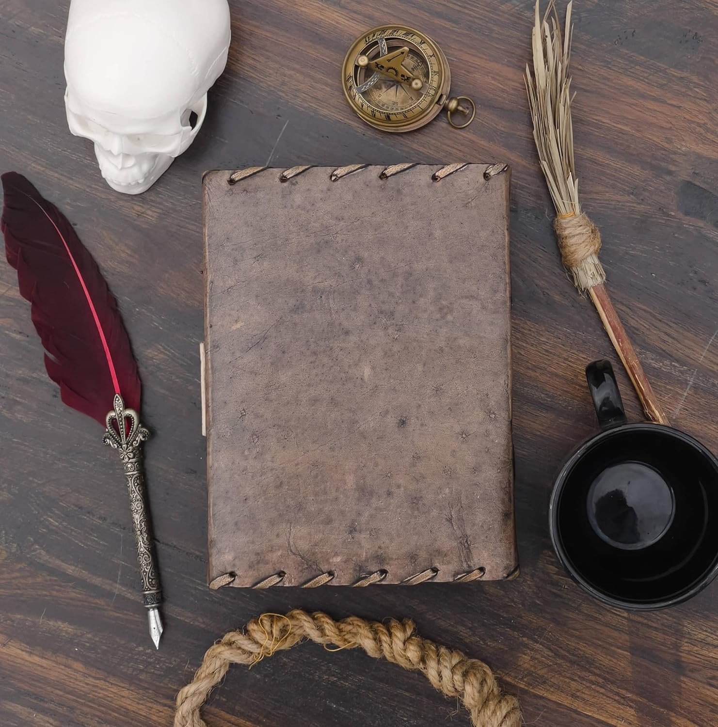 - Vintage-Schloss und stabile Bindung – der Vintage-Verschluss hält all Ihre wertvollen Schriften im Inneren. Stabile, handgenähte Bindung, um sicherzustellen, dass sich kein Papier aus Ihrem Hokuspokusbuch löst