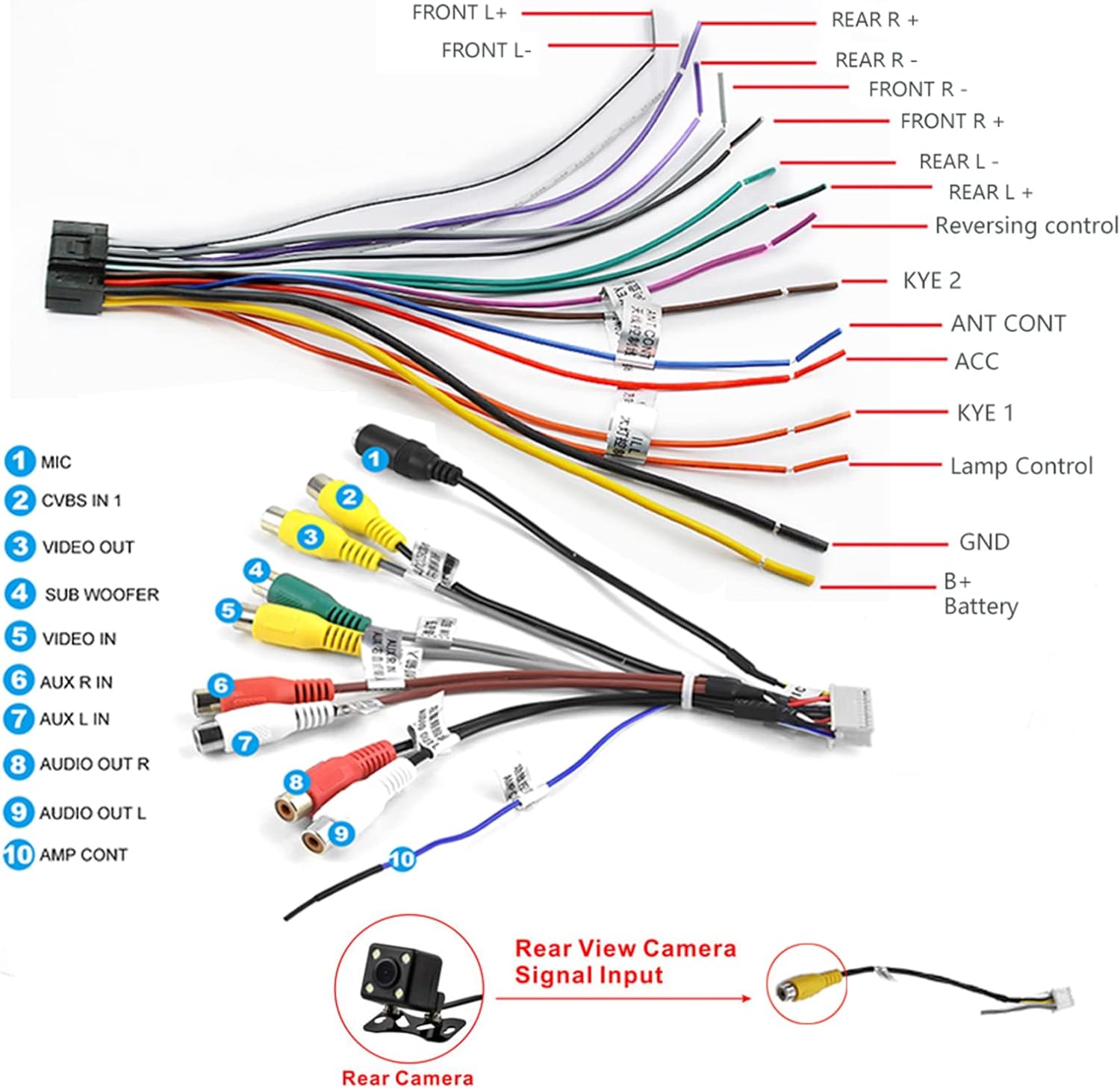 - 【Mehr Funktionen Einführung】Unterstützt das Erlernen der originalen Fahrzeug-Lenkradtasten. Eingebaute Voreinstellung und EQ-Bänder, mit RCA, Unterstützung von Audio- und Vedio-Eingang und -Ausgang, mit Subwoofer-Anschluss, Unterstützung von