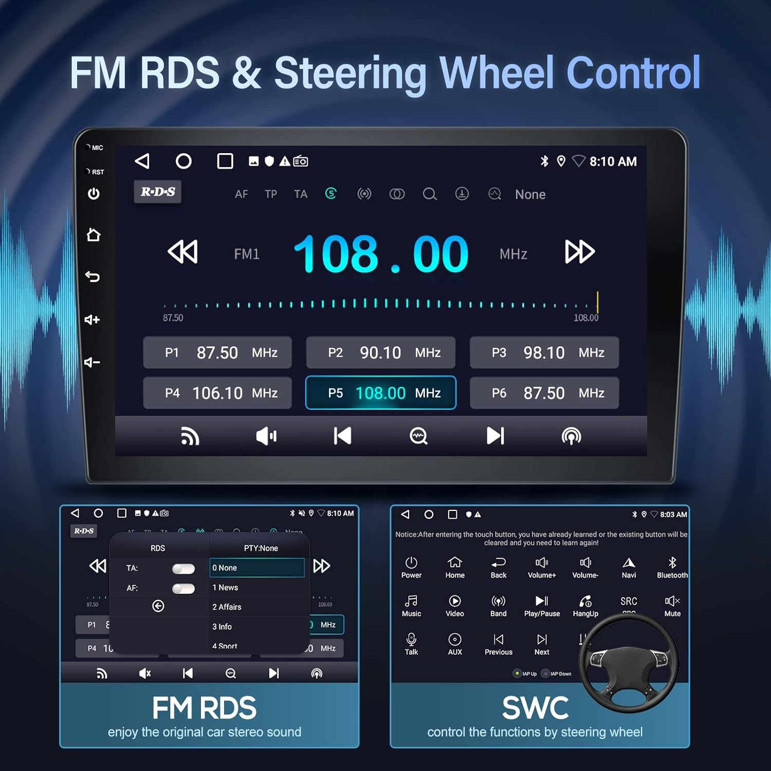 - 【Bluetooth Autoradio mit FM/RDS Radio & Hifi】Dieses 2 din Autoradio mit Bluetooth unterstützt Bluetooth Freisprechfunktion und Bluetooth Musikwiedergabe. Voreingestelltes FM-Autoradio mit einer breiten Palette von Kanälen (FM87.50-108.0MH), können