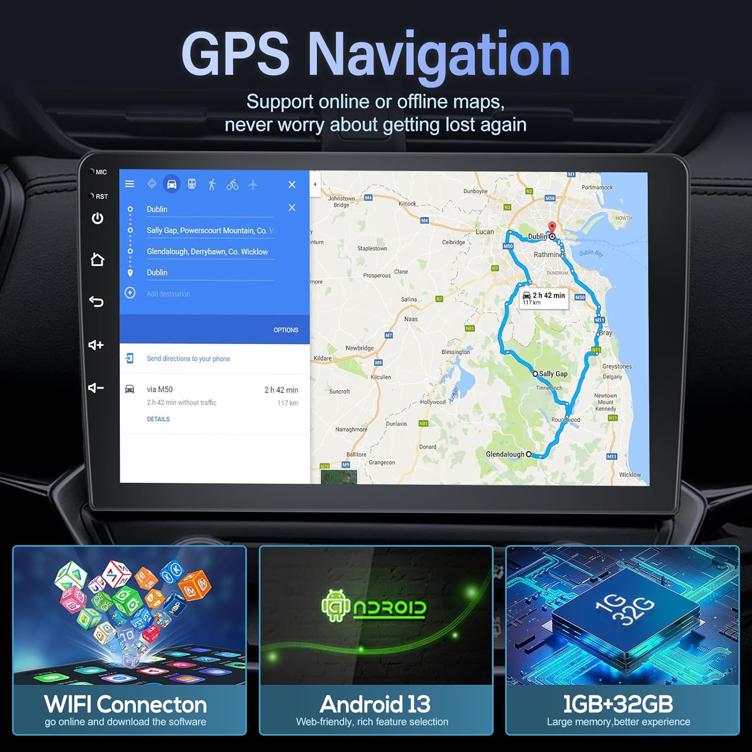 - 【Hardware und System】Android 13+GPS-Empfänger+ WiFi+ Bluetooth+ FM RDS Radio+ 1GB RAM/ 32GB ROM+ Hifi+ EQ+ 26 desktop theme UI+ SWC+ geteilter Bildschirm. 9"-Touchscreen mit voller Kapazität und hoher Auflösung von 1024*600. Tiefgreifende