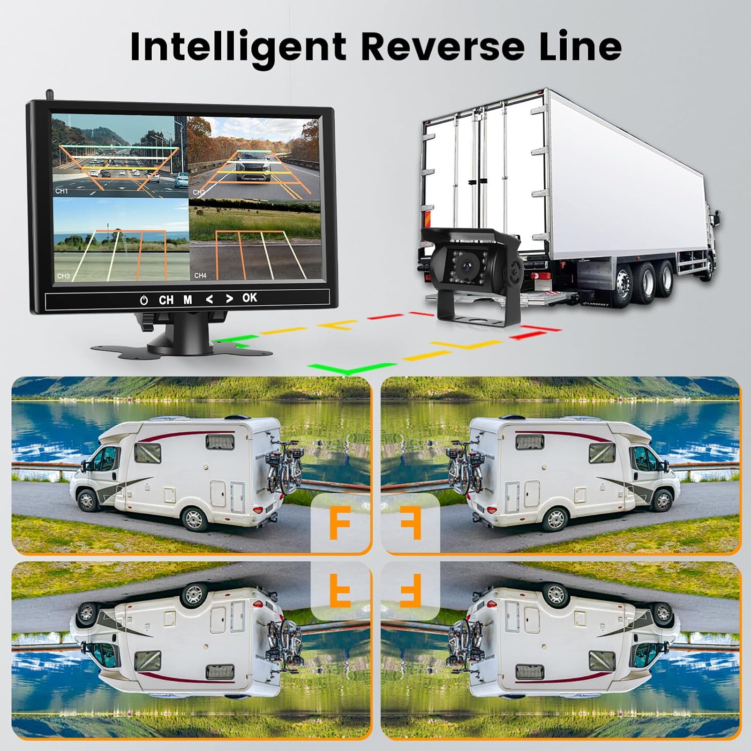 Hodozzy Rückfahrkamera Kabellos 4 Kameras 9 Zoll HD Monitor Wireless Rückfahrkamera Set, 18 IR-Nacht