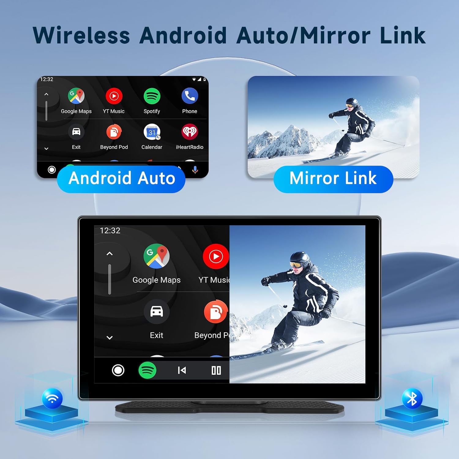 - [Für Android Phones, Wireless Android Auto und Mirror Link]: Eingebaute Android Auto Funktionen. Nachdem Sie Bluetooth und WiFi verbunden haben, um Android Auto zu starten, können Sie mit Gogle Voice Control Ihr Telefon mit Ihrer Stimme steuern, z. B.