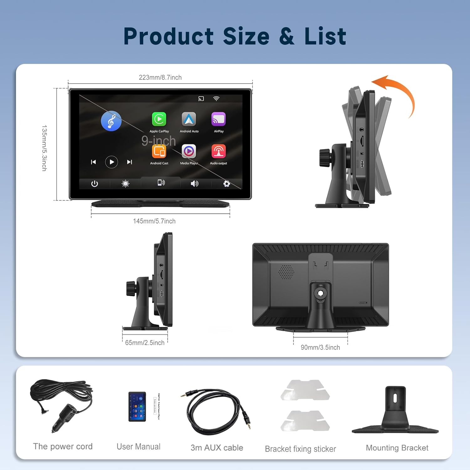 - [Für iOS, Wireless Carplay und Airplay]: Dieser drahtlose Automonitor ist mit Apple Carplay und Airplay kompatibel. Sie können navigieren, Musik abspielen, „Siri“ zur Sprachsteuerung aufrufen. Die Airplay-Funktion ermöglicht es Ihnen, Ihre