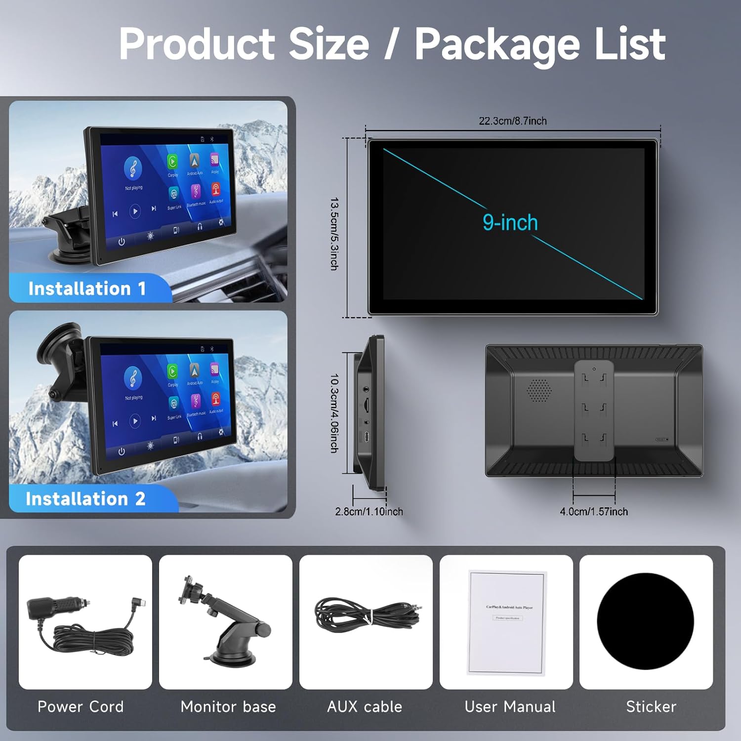- 2,5D-Display und Audio:Unser tragbares Autoradio mit 9-Zoll-HD-Touchscreen bietet ein lebendiges und klares Display, mit dem Sie ganz einfach durch Ihre Medien navigieren und Ihre Audioeinstellungen steuern können. Mit den integrierten Lautsprechern