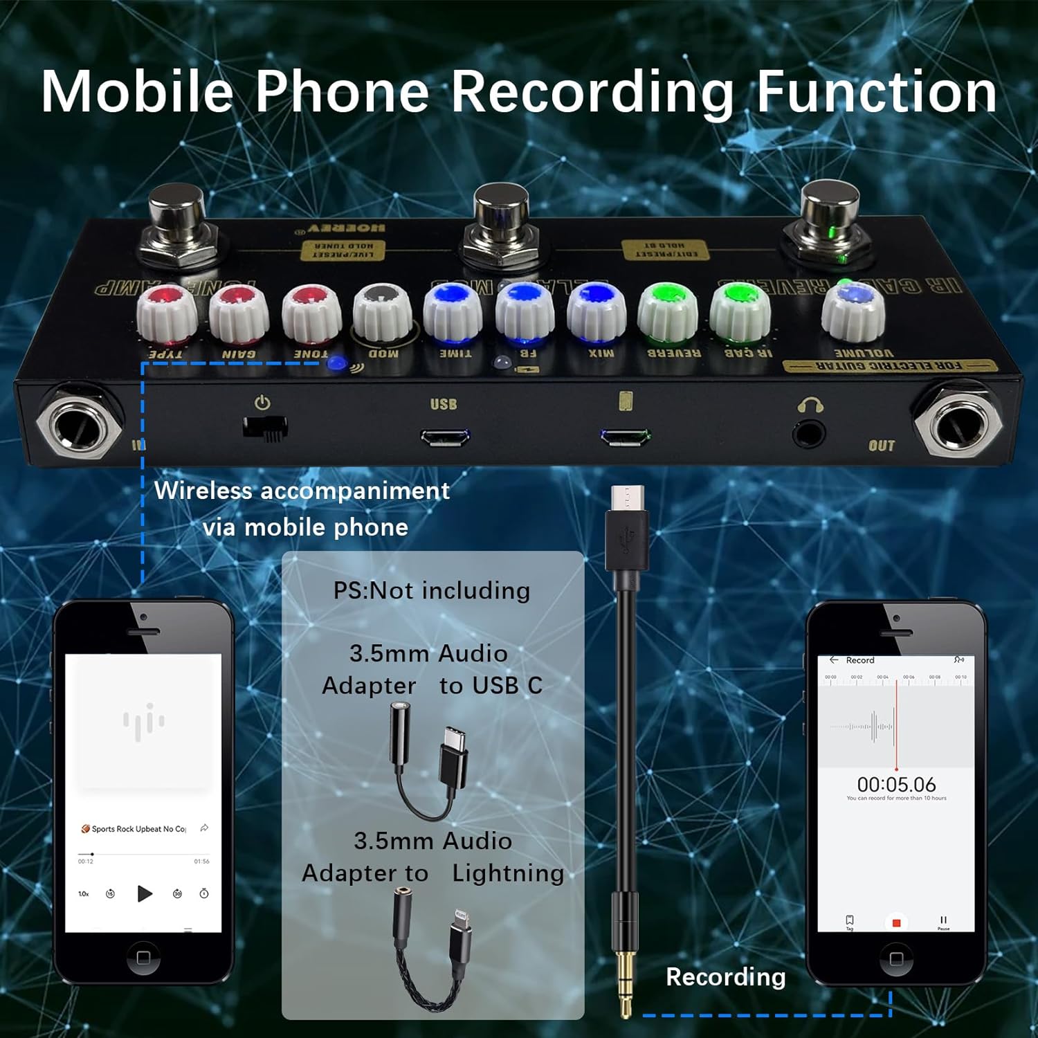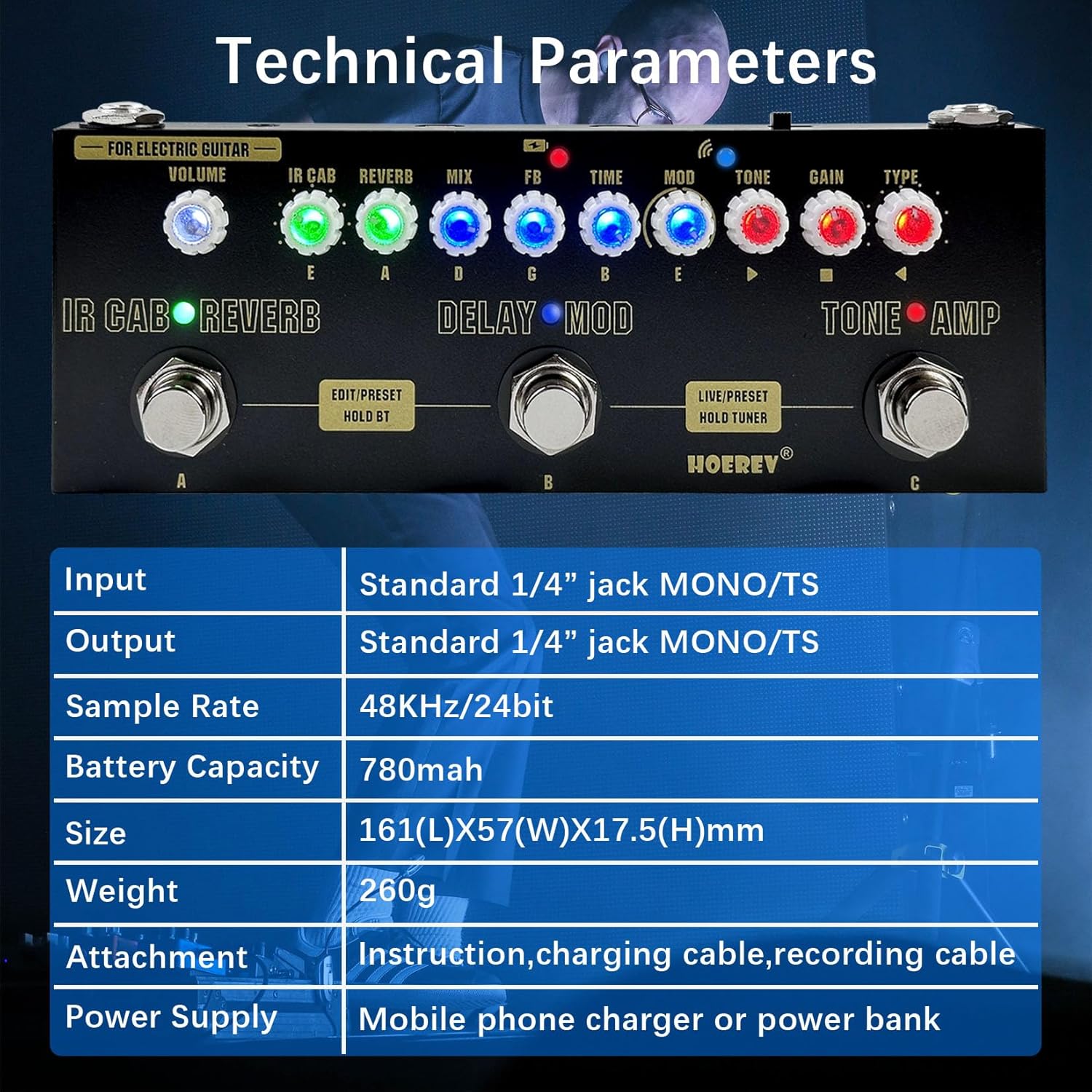 • 🎸🎸 【9 AMP-Modi & 8 IR-KABINE】Hoerev Multi-funktional Gitarre Effekte Treten Sie in die Pedale mit übersteuern Verzerrung, CHORUS/PHASER, Verzögerung und Hall Effekte einschliesslich 9 klassisch Ampere Vorverstärker und 8 klassisches IR