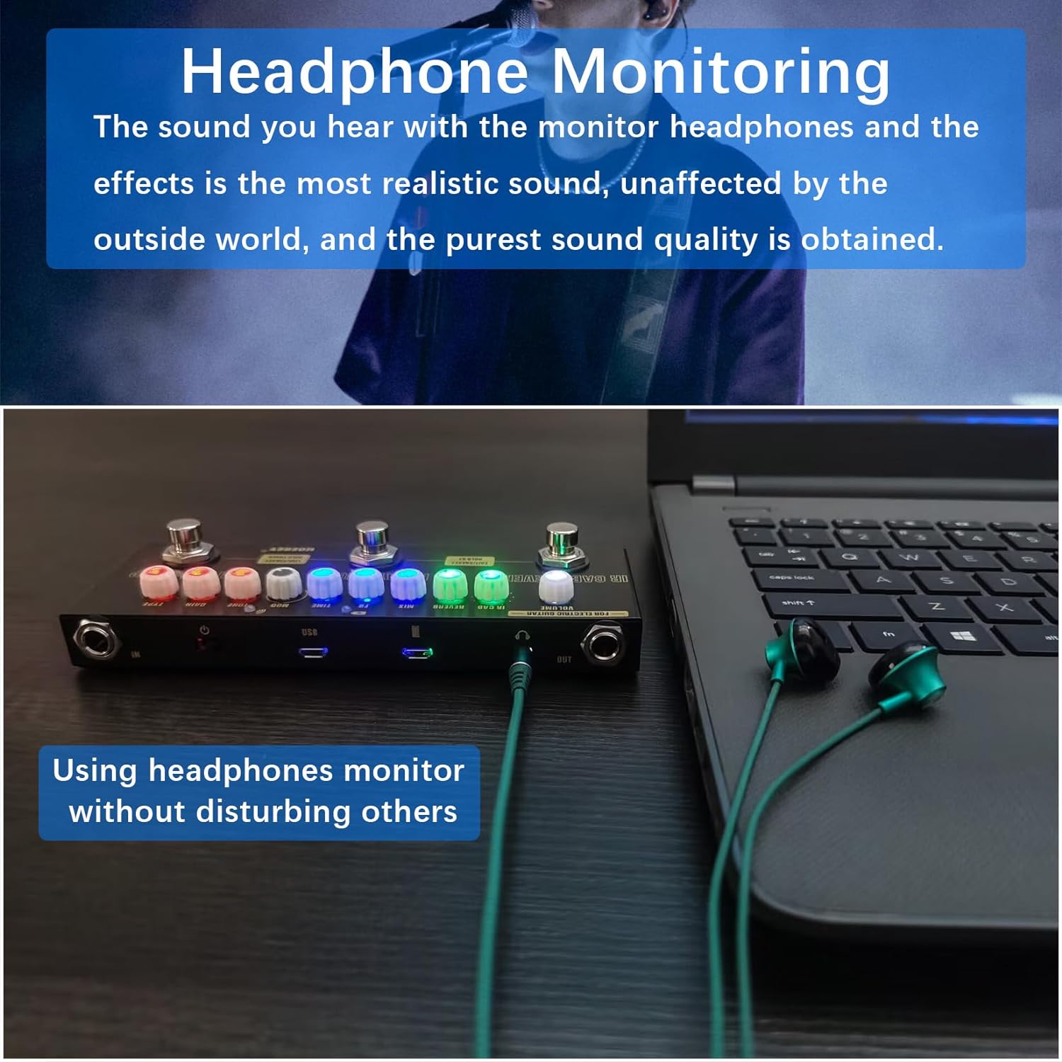 • 🎸🎸 【3,5 mm Kopfhörer Ausgang】Die Multieffekte Ausgestattet mit a 3,5 mm Kopfhörer Klinken-Ausgang für mehr Klares Hören und Hören,praktisch für das tägliche Üben, ohne Familienmitglieder und Nachbarn zu stören. Dieses Gitarrenpedal