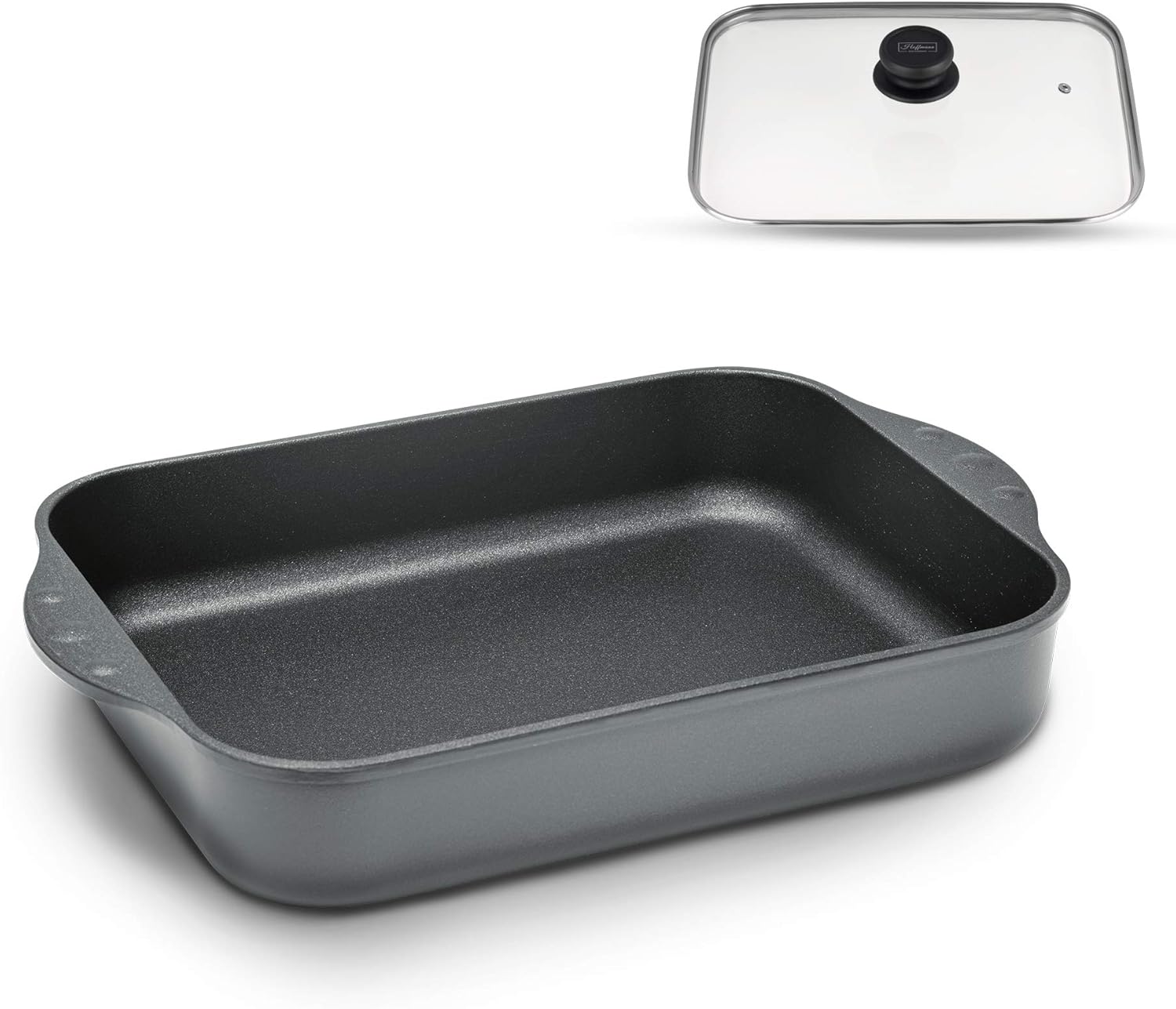 - Diese rechteckige Schmorpfanne eignet sich nicht nur zum herrlichen Schmoren und Braten von Zutaten, sondern auch perfekt für das Überbacken von Aufläufen und Gratin. Sie benötigen also kein Weiteres Kochgeschirr und ersparen sich somit unnötigen