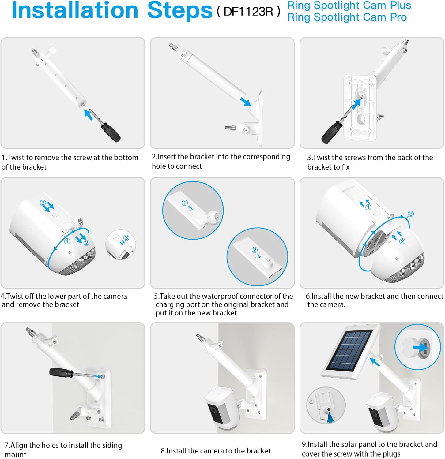 - 【SYNCHRONE INSTALLATION】:Die 2 in 1halterung ist mit zwei Schraubenlöchern ausgestattet. Die Halterung kann gleichzeitig Ihr Stick Up Cam Batterie ring Spotlight Kamera Batteriering Solarpanel installieren. Sie müssen keine zusätzlichen