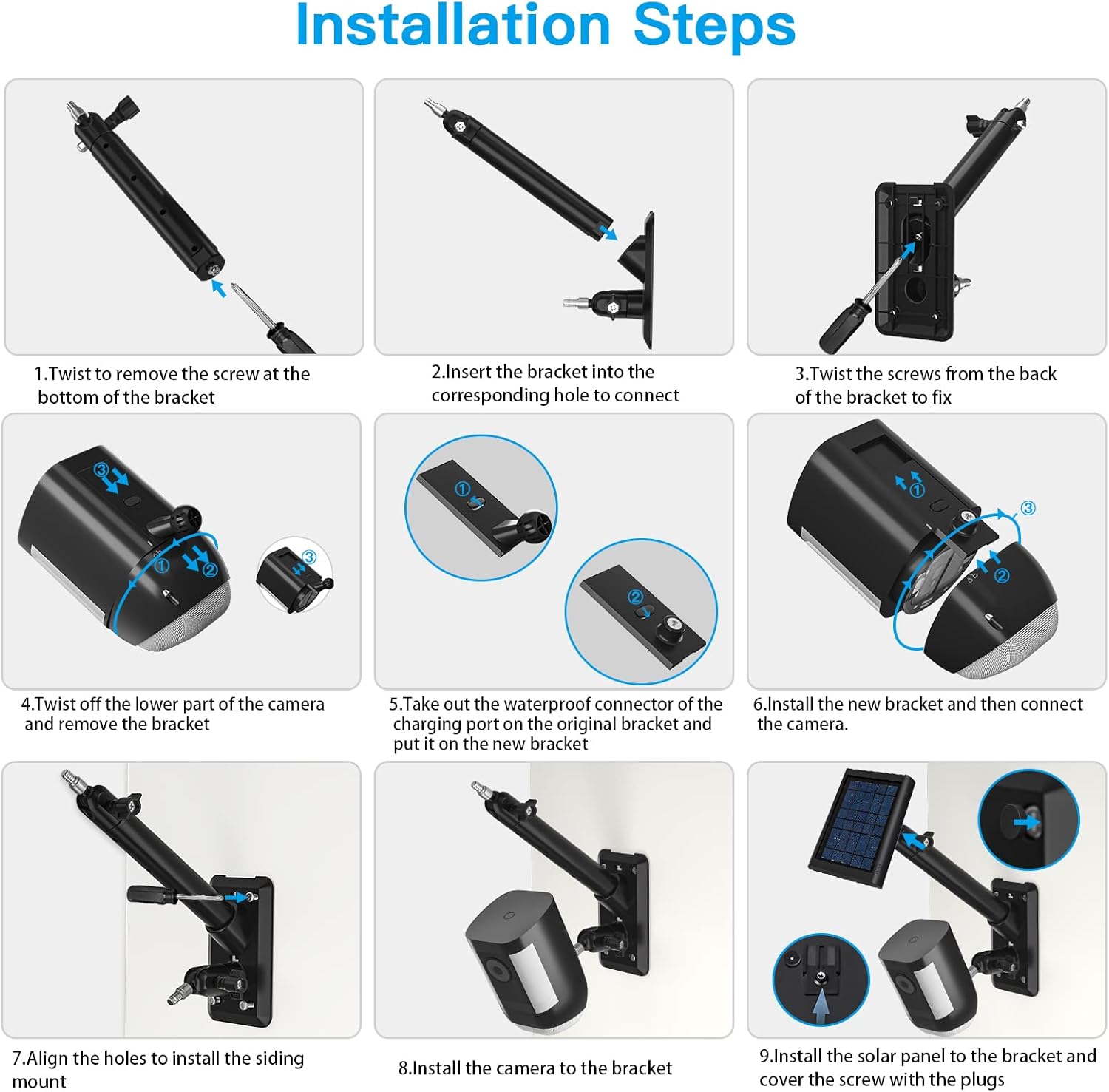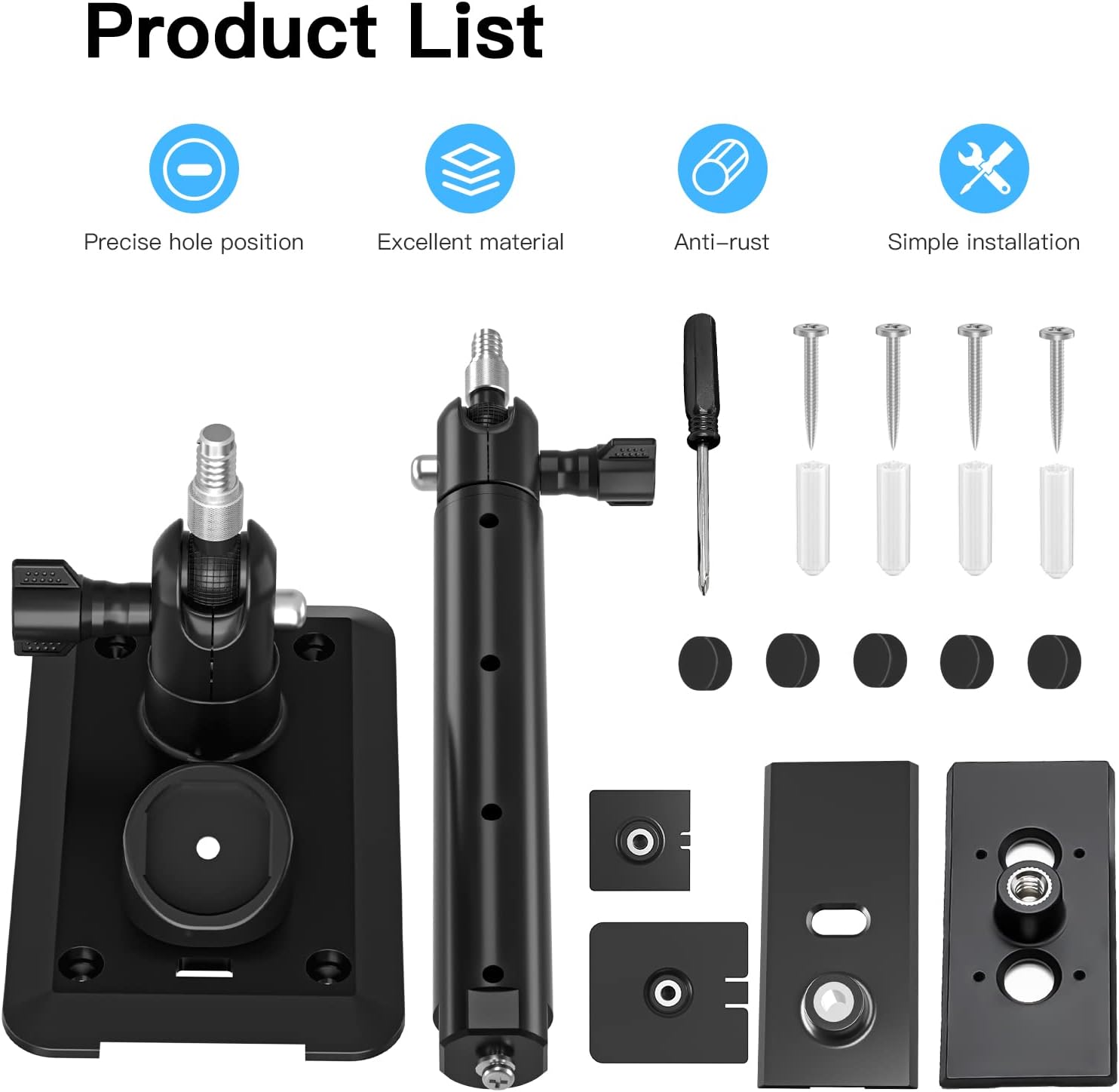 - 【SYNCHRONE INSTALLATION】:Die 2 in 1halterung ist mit zwei Schraubenlöchern ausgestattet. Die Halterung kann gleichzeitig Ihr Stick Up Cam Batterie ring Spotlight Kamera Batteriering Solarpanel installieren. Sie müssen keine zusätzlichen