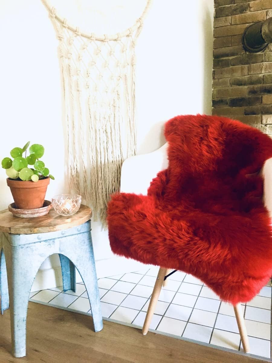 Hollert Lammfell Merino Rot kuschelig flauschig Schaffell waschbar Echtfell Läufer Teppich für Wohnz