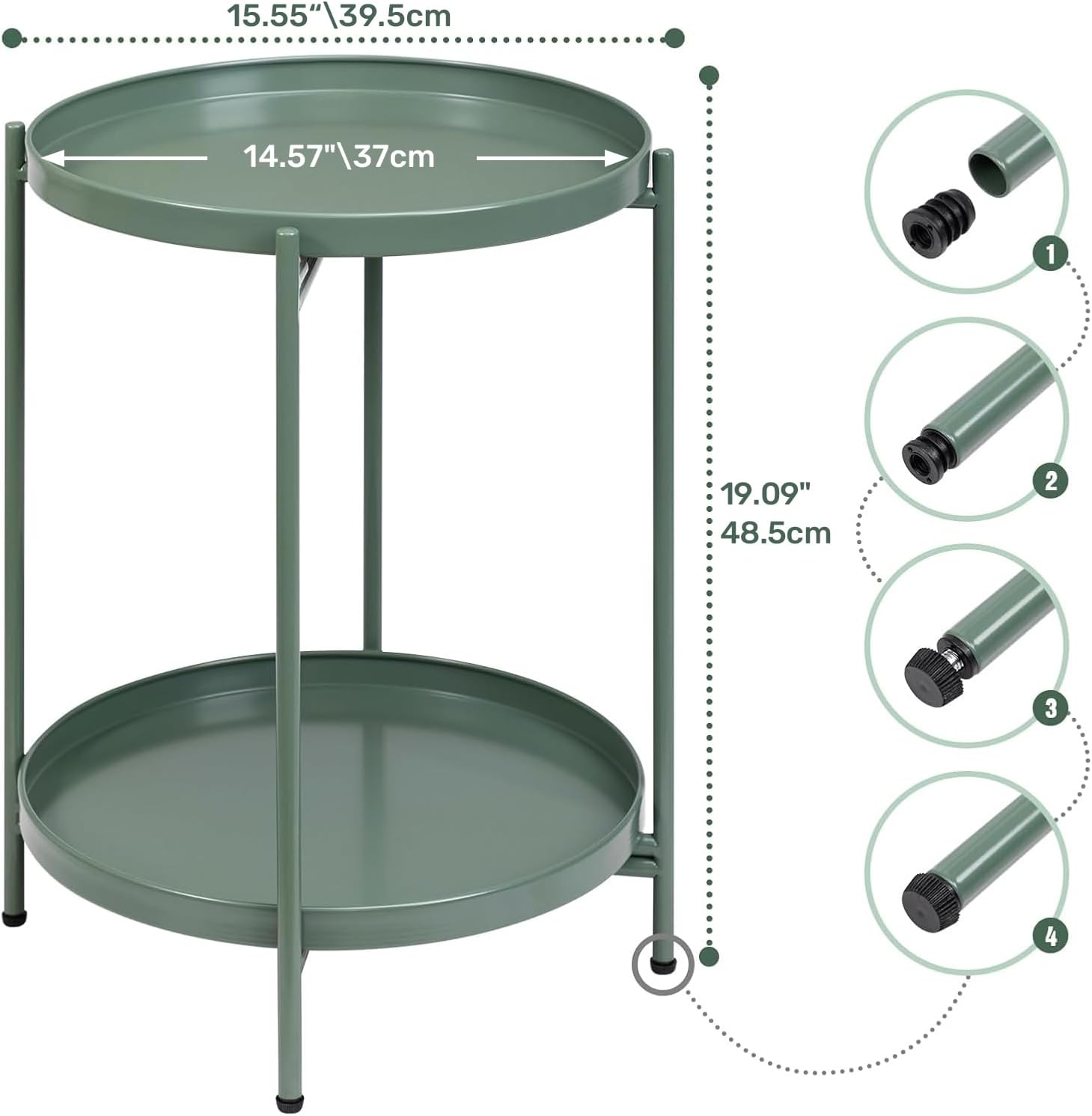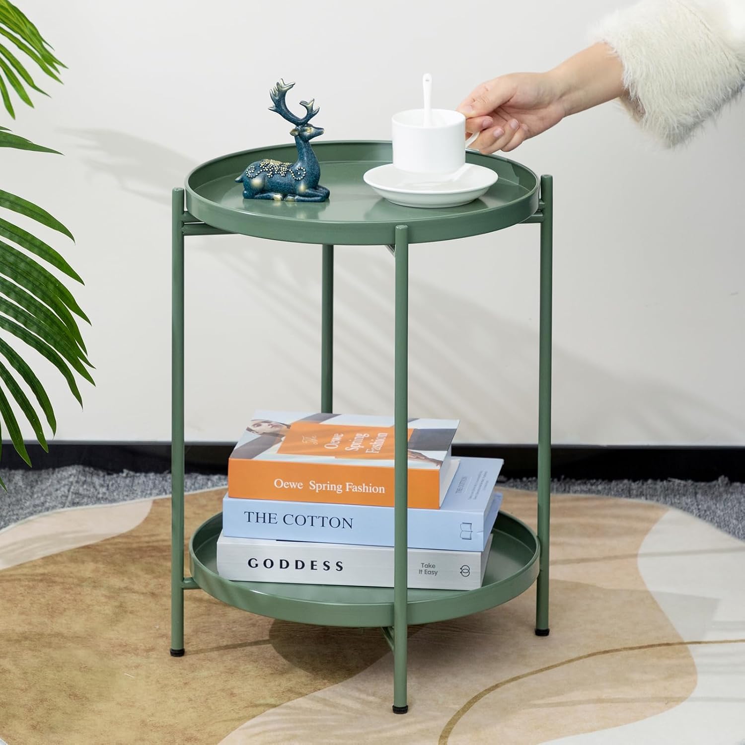 • Unser runder akzenttisch mit abnehmbarem tablett kann als serviertablett in Ihrem zuhause verwendet werden. Ideal zum aufbewahren von getränken, snacks, büchern, vasen und topfpflanzen, um Ihre sachen bequem zu präsentieren und unordnung zu beseitigen.