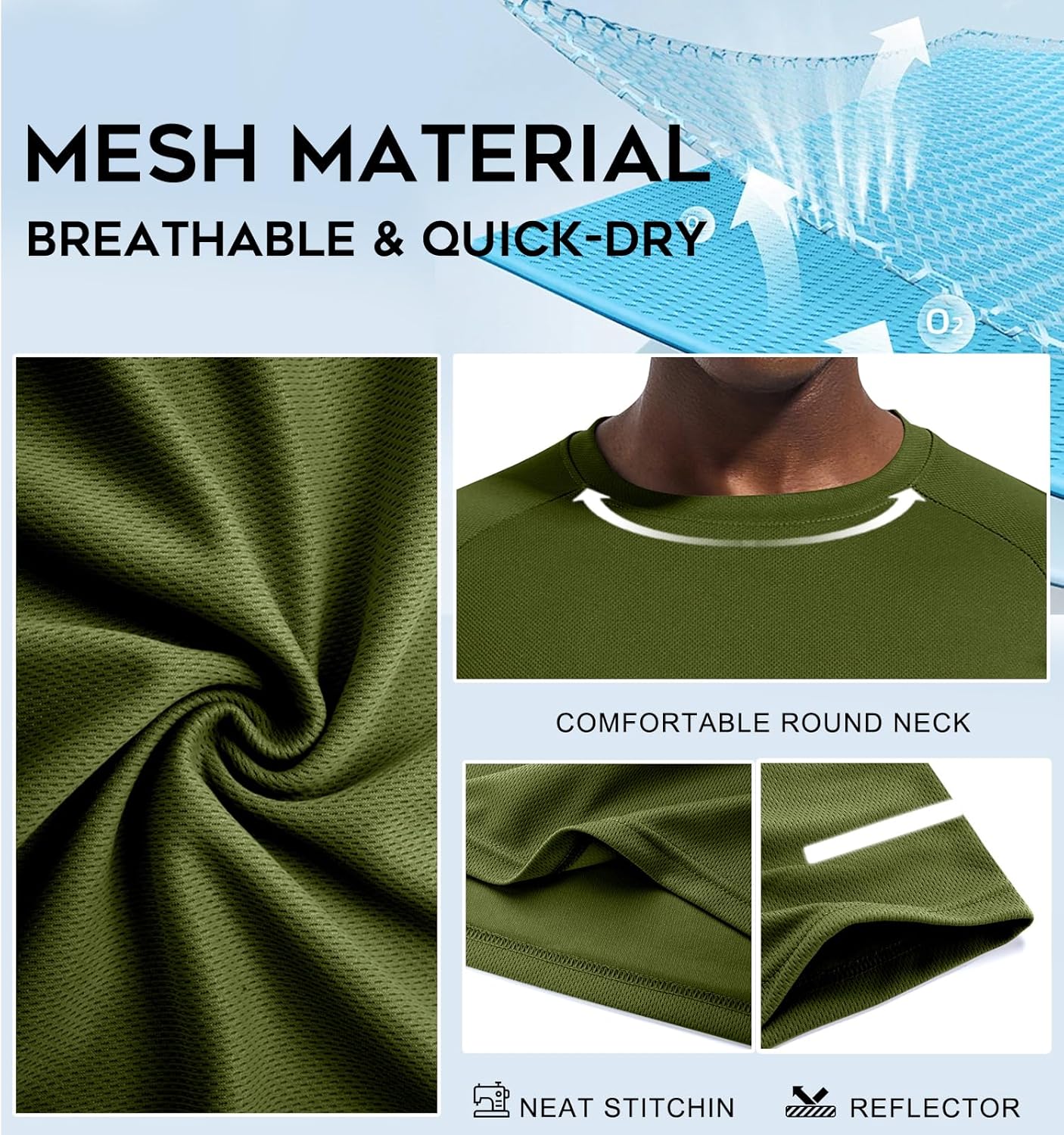 - T-Shirt-Stoff – Fest: Netzstoff, 100 % Polyester, maschinenwaschbar. (Heather Grey: 90,5 % Polyester, 9,5 % Elasthan, kein Netz). Leichtes, dehnbares, feuchtigkeitsableitendes Power-Gewebe Workout-Out-Trainings-Shirts.