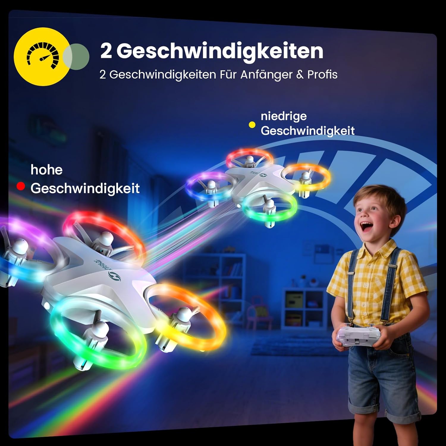 - ๐ ๐ ๐ ๐๐ซ๐๐๐ง ๐๐๐-๐๐ข๐๐ก๐ญ๐๐ซ โ ๐๐๐ ๐ข๐ฌ๐๐ก๐๐ฌ ๐ ๐ฅ๐ฎ๐ ๐๐ซ๐ฅ๐๐๐ง๐ข๐ฌ: Mit 6 verschiedenen Leuchtmodi erstrahlt die Mini-Drohne wie ein kleines Fluglicht im