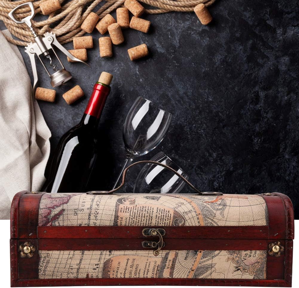 • 【Antikes Kartendesign】 Diese Weinkiste aus Holz ist mit Koffergurten aus Kunstleder, Messingschnallenverschlüssen und glänzenden Messingnieten sowie einem antiken Kartendesign für Vintage-Flair verziert. Diese Weinbox ist die perfekte Art, edle