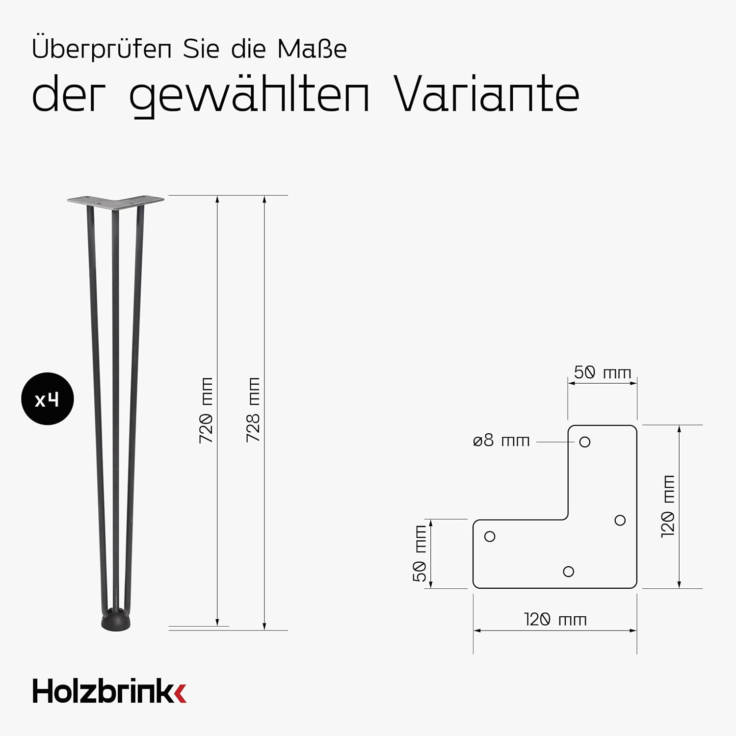 Variante: 4 Stück - 72 cm Rohstahl mit Klarlack / 3-stangen