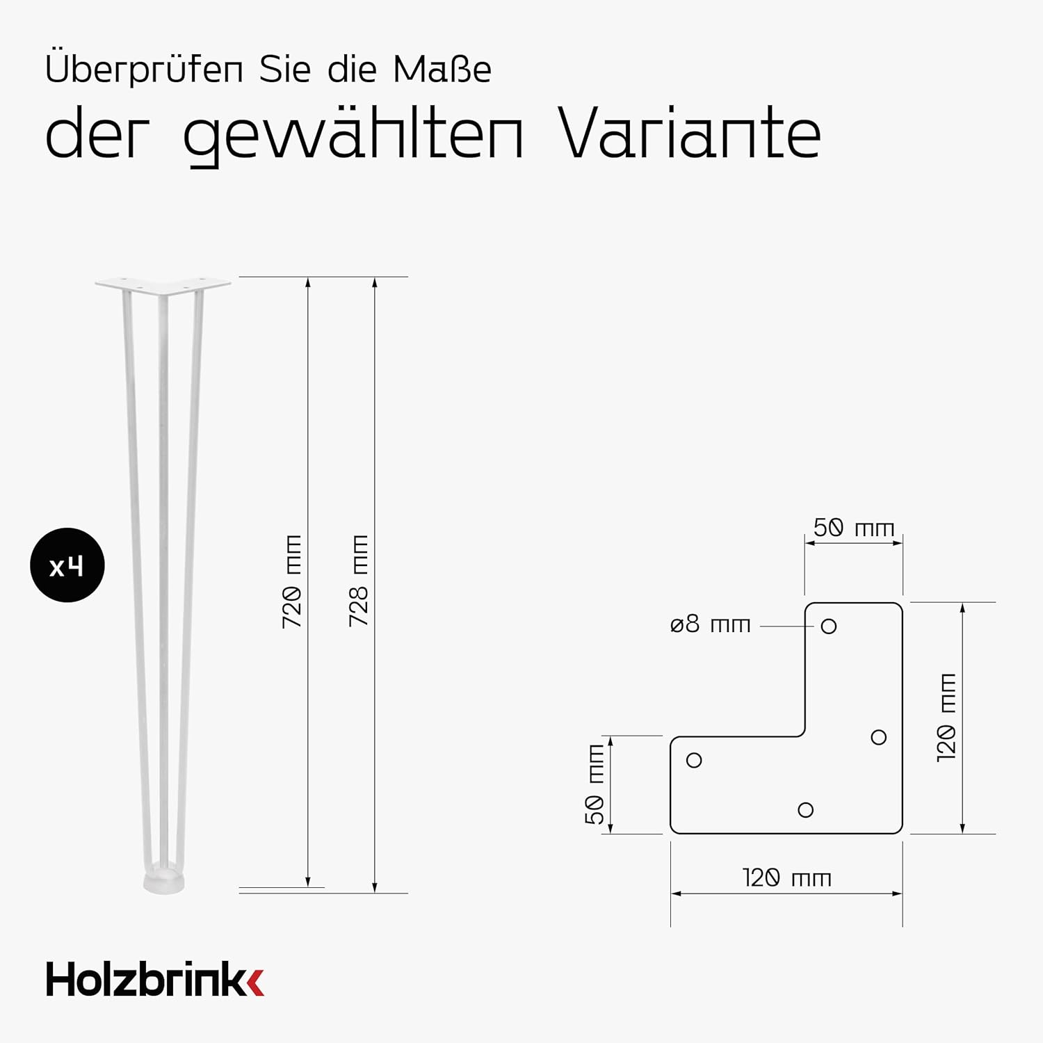 Variante: 4 Stück - 72 cm Weiss / 3-stangen