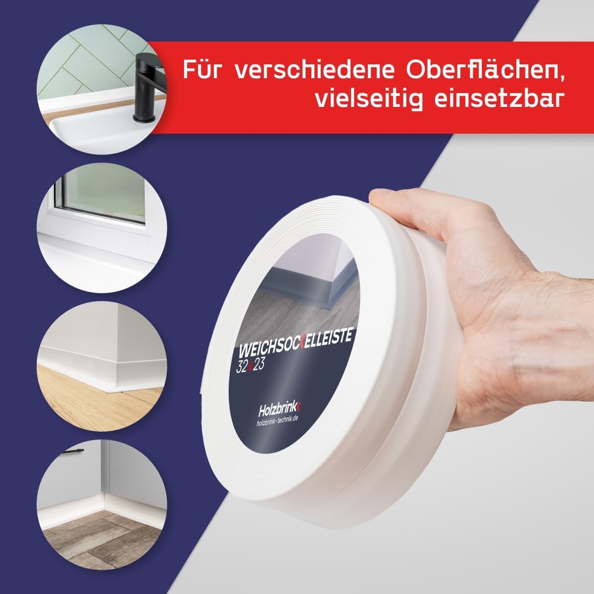 HOLZBRINK Weichsockelleiste selbstklebend WEISS Knickleiste, 32x23mm, 15 Meter 15m Weiss, 15m Weiss