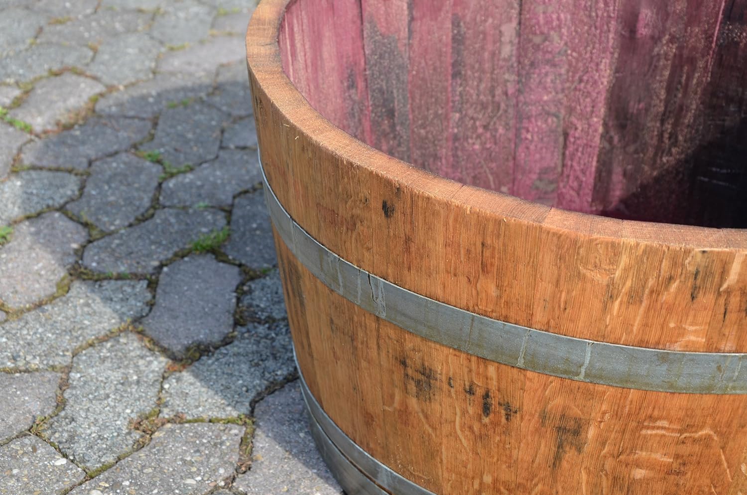 Holzfass als Pflanzkübel, Weinfass halbiert geölt (D70 cm) (mit Halteschlaufen und Rollen)
