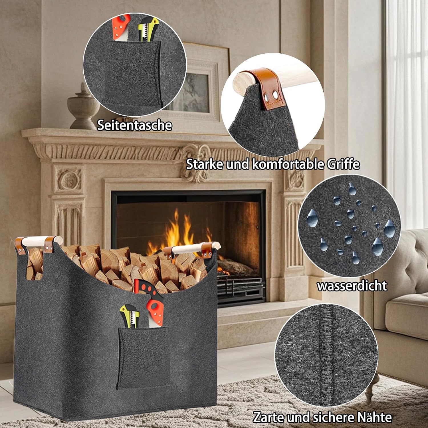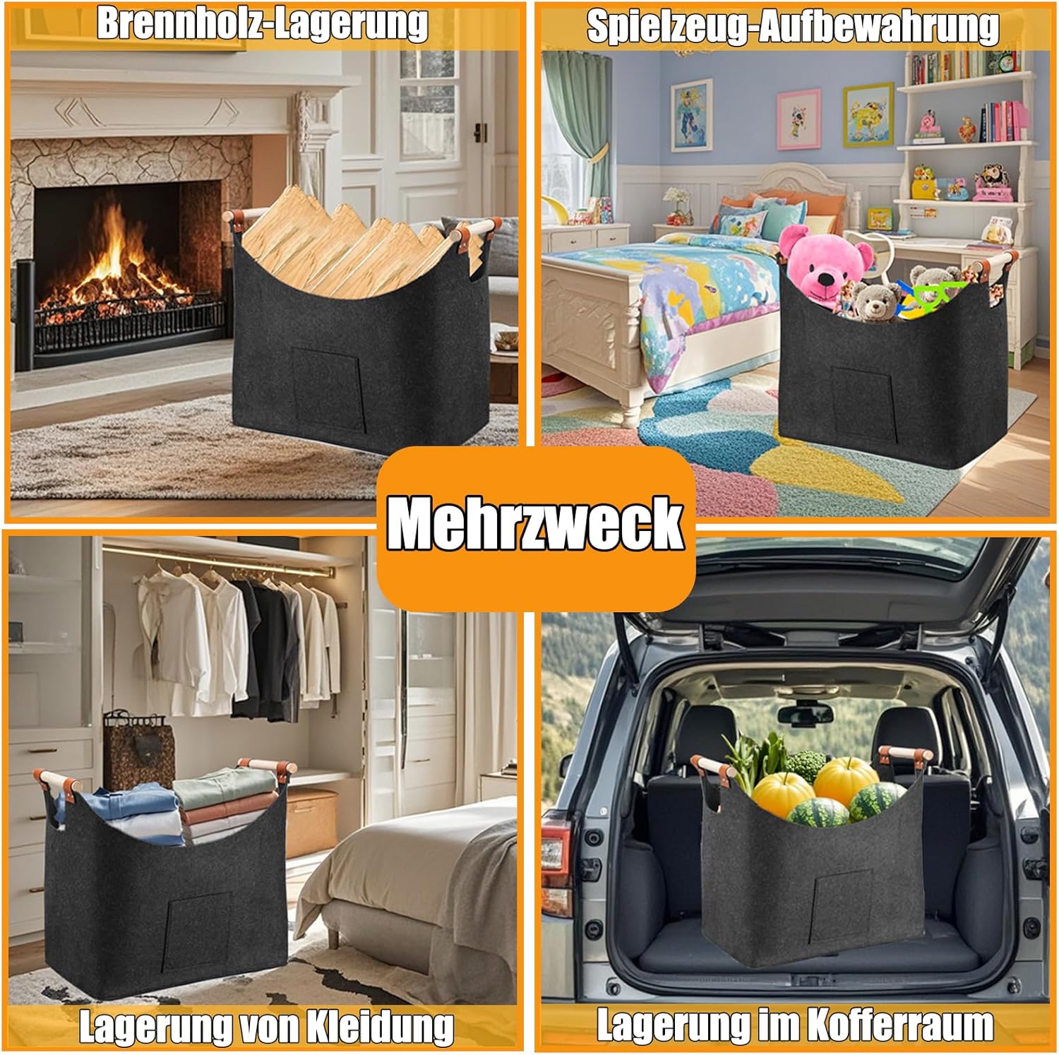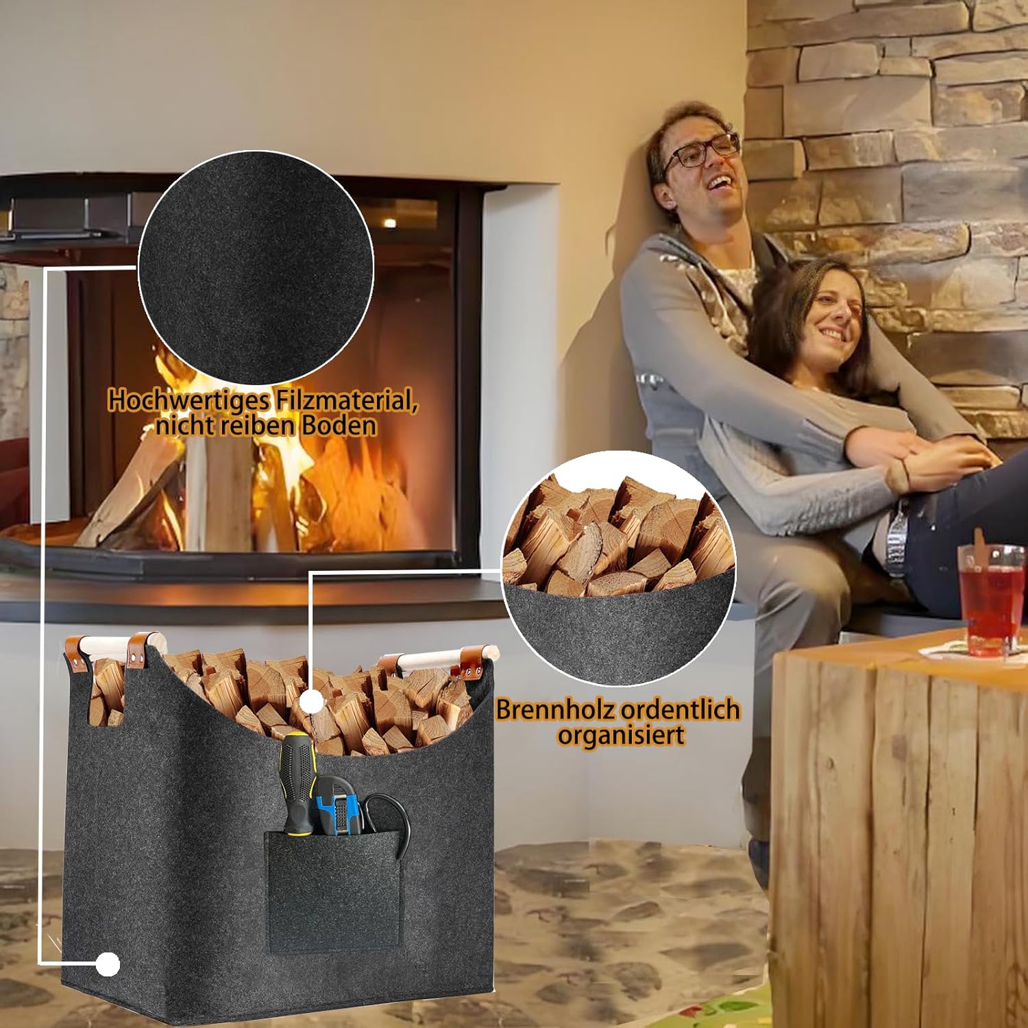 - 【Elegantes und stilvolles Design】Korb für Kaminholz vereint Funktionalität und Ästhetik. Der Filzkorb Gross fügt sich perfekt in verschiedene Innendekorationsstile ein und harmoniert wunderbar mit der Atmosphäre eines Kamins oder Ofens.